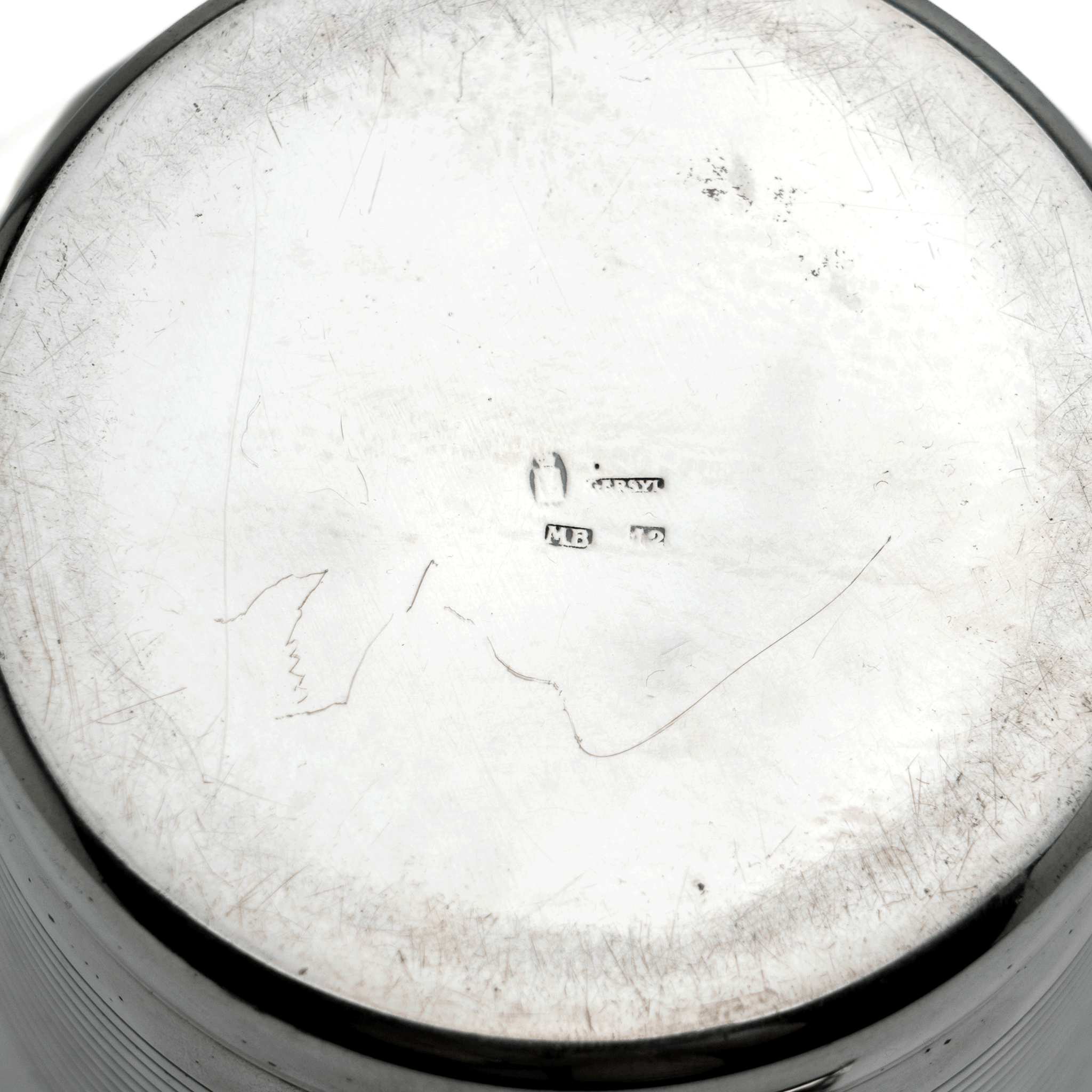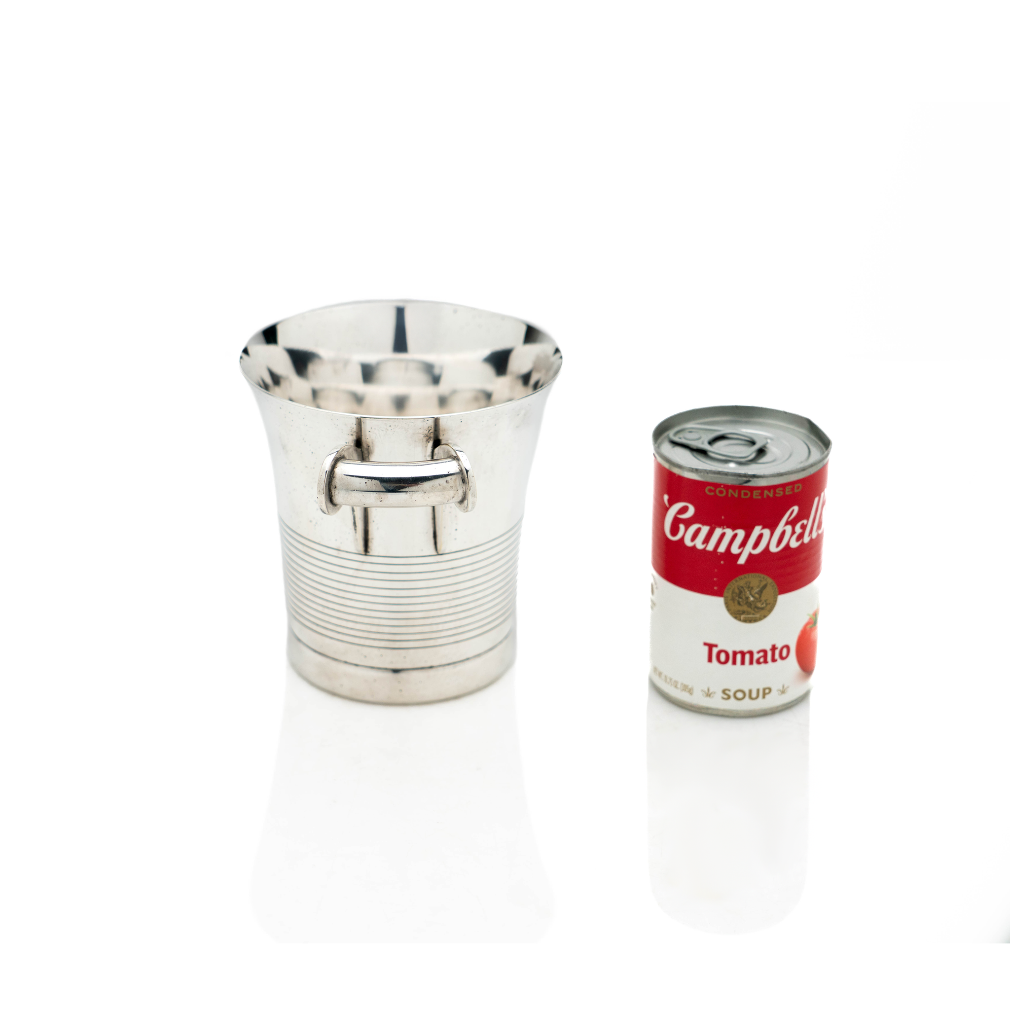 A fine and chic French ice bucket from the 1950s. Crafted out of a heavy-gauge silver-plated brass, this fabulous bucket features a subtle banding around the base with scrolled handles flanked on either side -- a perfect piece for any bar.