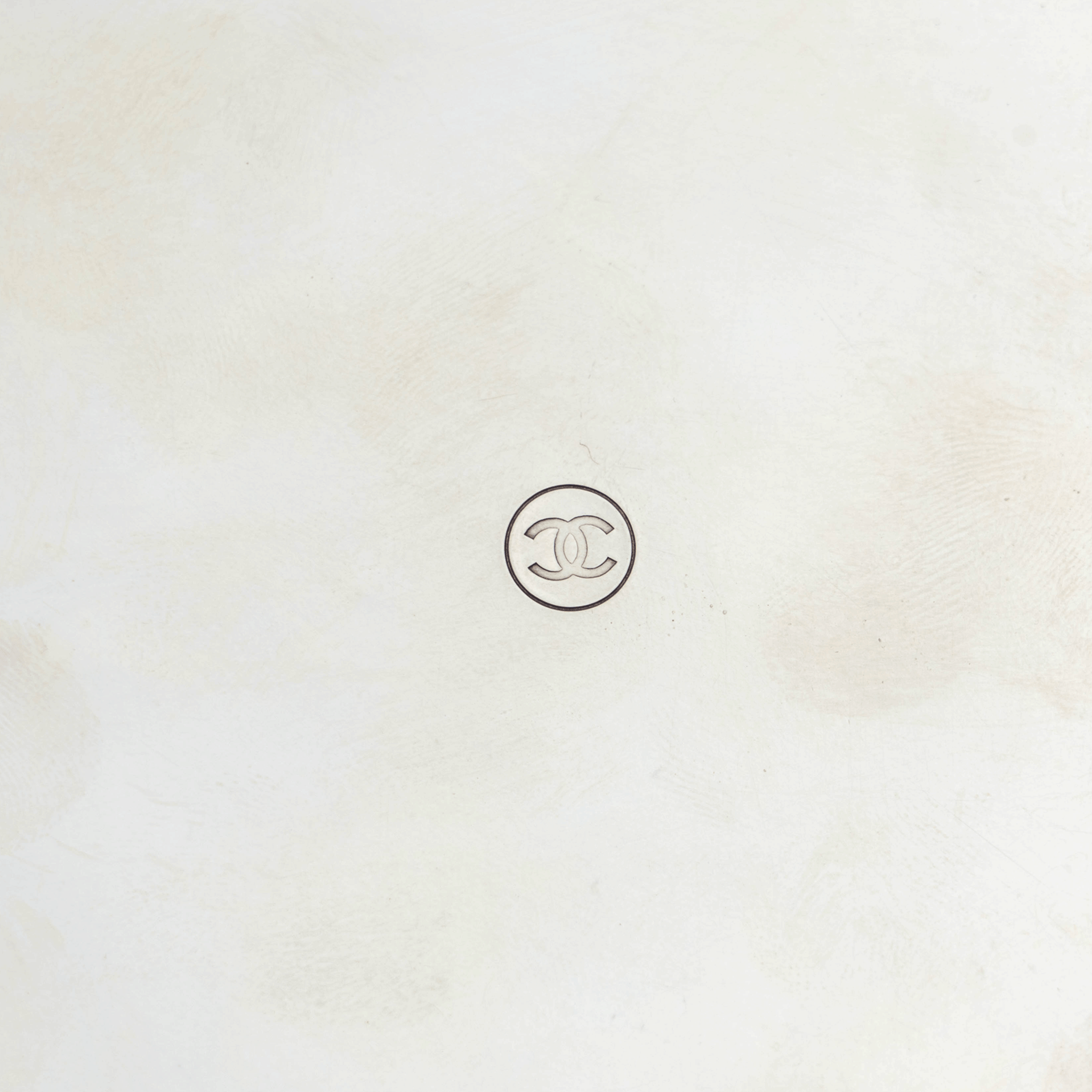 A fine and elegant pair of coasters, made for Chanel Paris. A beautiful and minimal design reveals a simple pressed edge, along with its inscribed logo on the underside. Let this chic and tasteful coasters elevate any room.