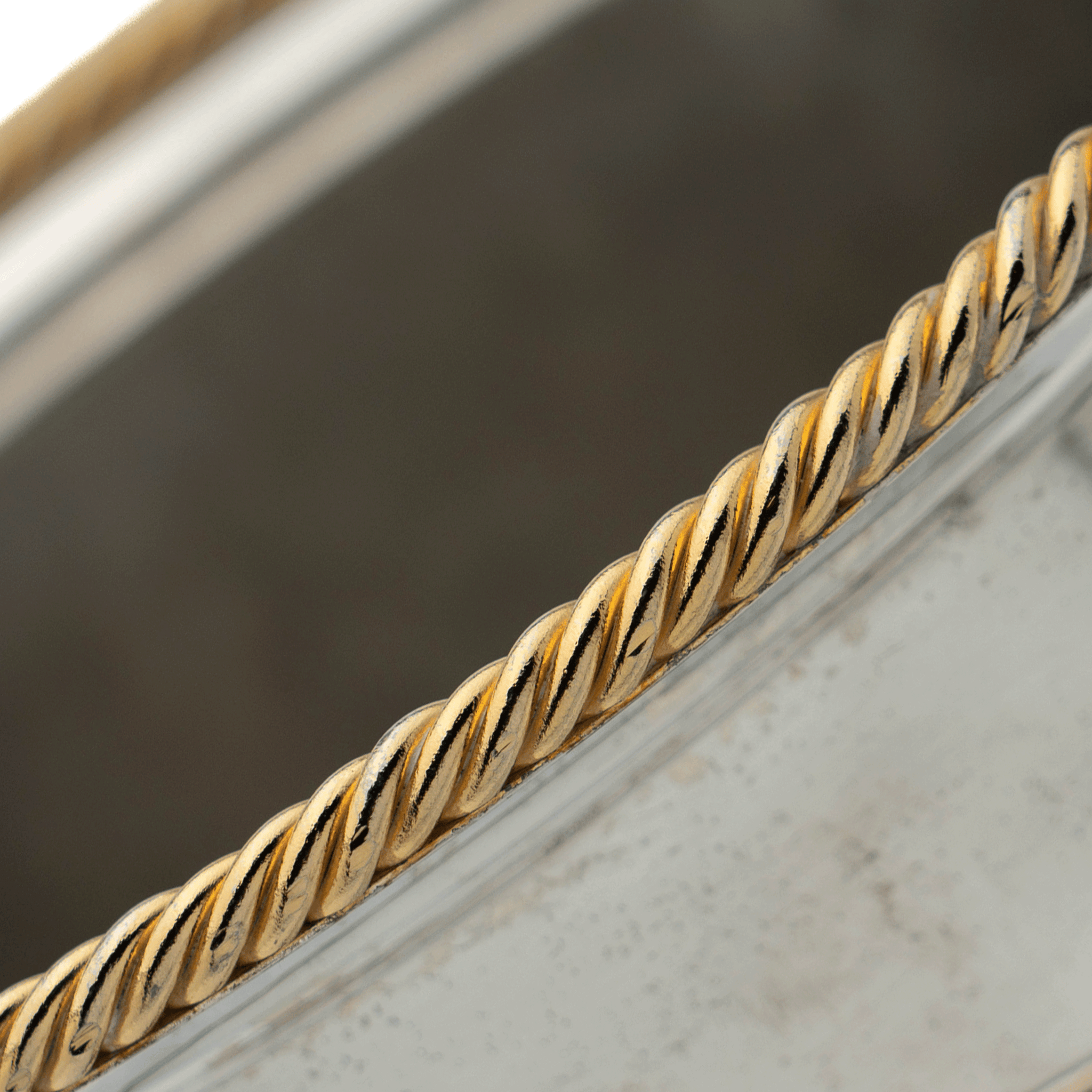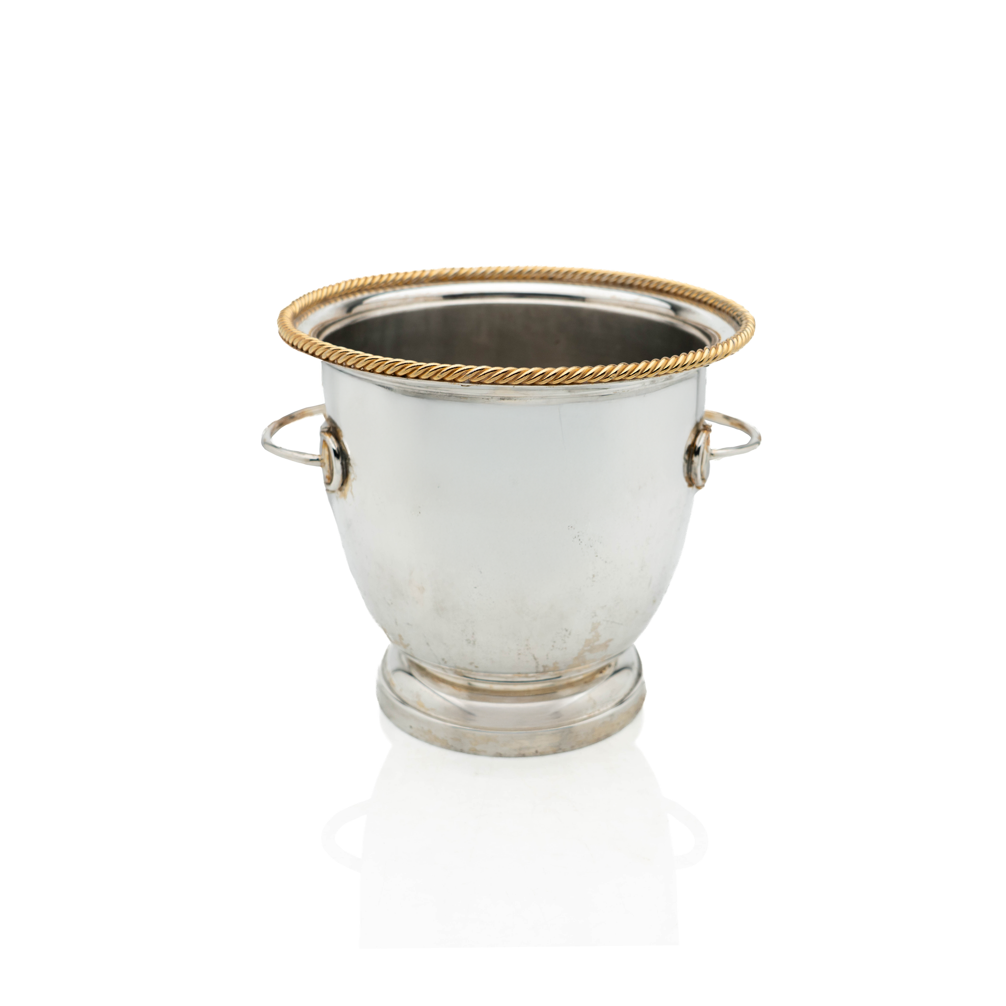 A fine and elegant Italian ice bucket, fashioned out of silver-plated brass in a classic urn form. Complete with a gilt-brass chainlink bezel and figural horsebit handles, this dynamic ice bucket will be a great addition to any bar, den or table.