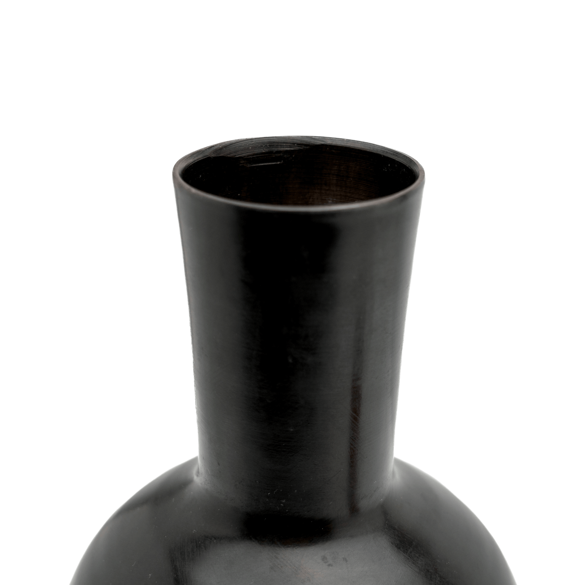 A fine and stunning modernist Japanese vase in bronze. Crafted with a simple spherical body...