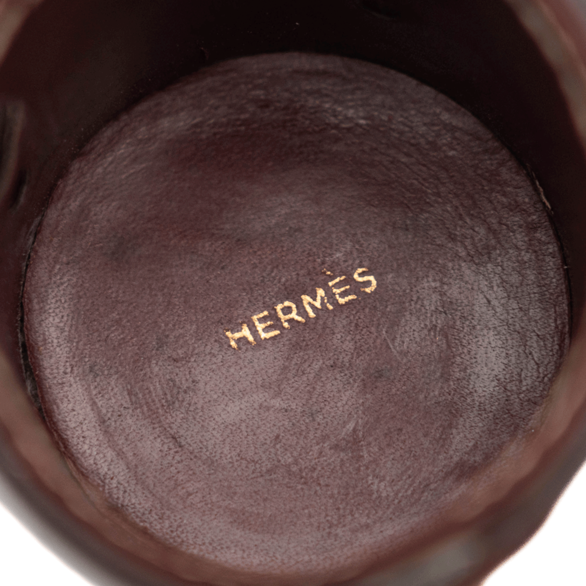 A pair of Hermes leather-handled cigarette cups in a playful take on Hermes' mangeoire bag. A fun accessory for any table.