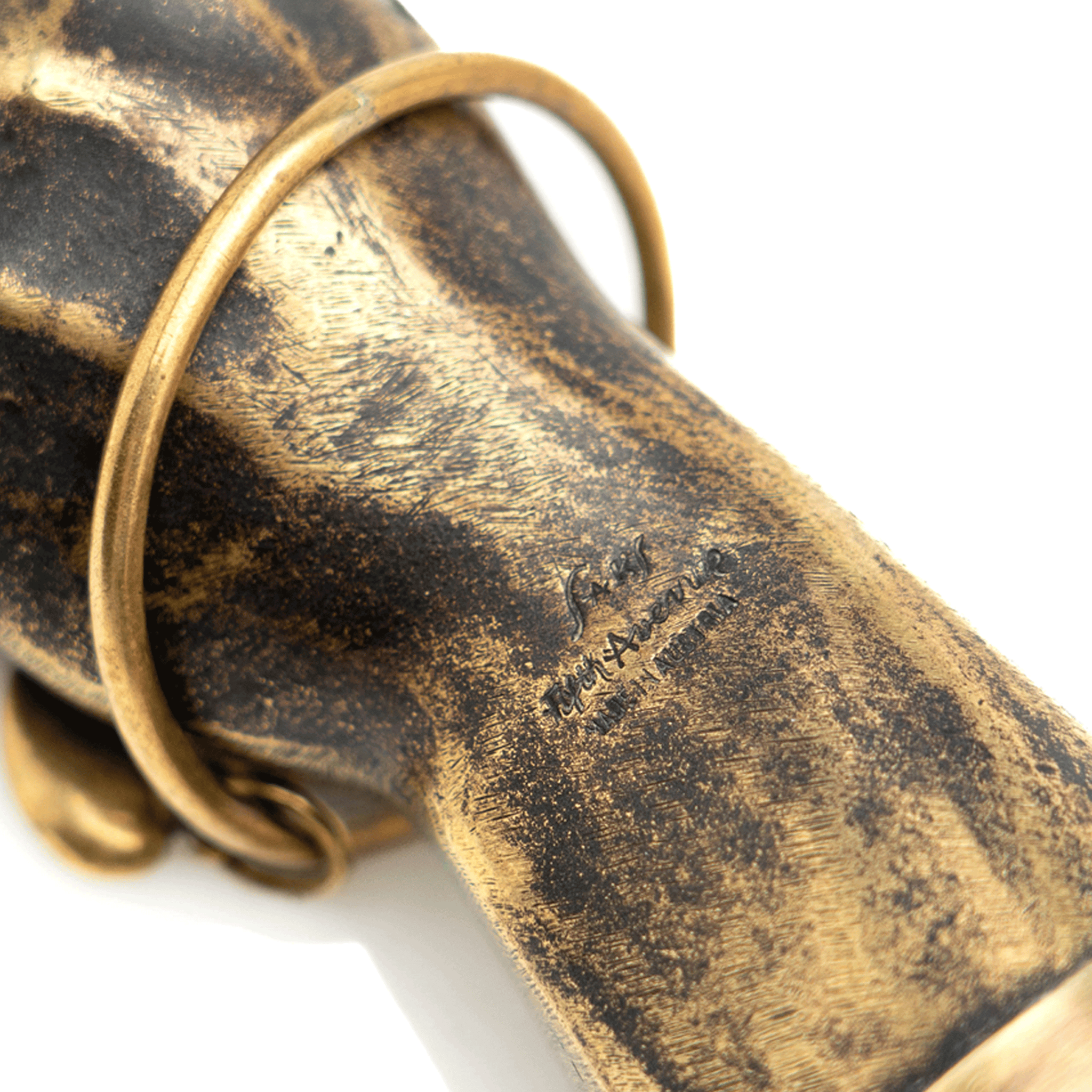 A cool and intriguing Austrian bronze table lighter, in the form of a fist with a charm around the wrist. This sculptural and functional lighter has a removable insert at the base of the arm, allowing for easy use when needed. Let this interesting table accessory add an esoteric touch to any table.