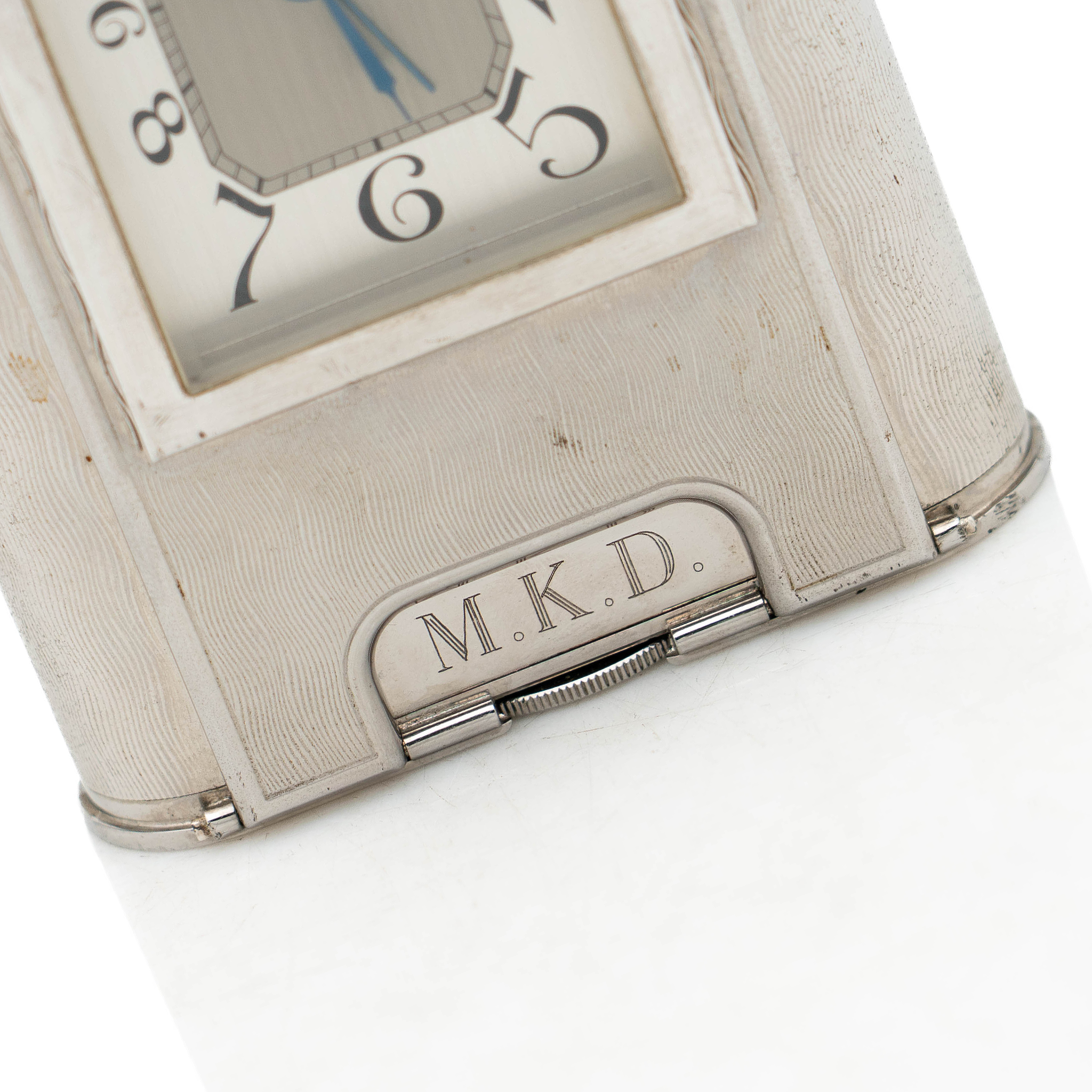 A fine and elegant clipper clock, made by Hermes in a heavy gauge of silver-plated...