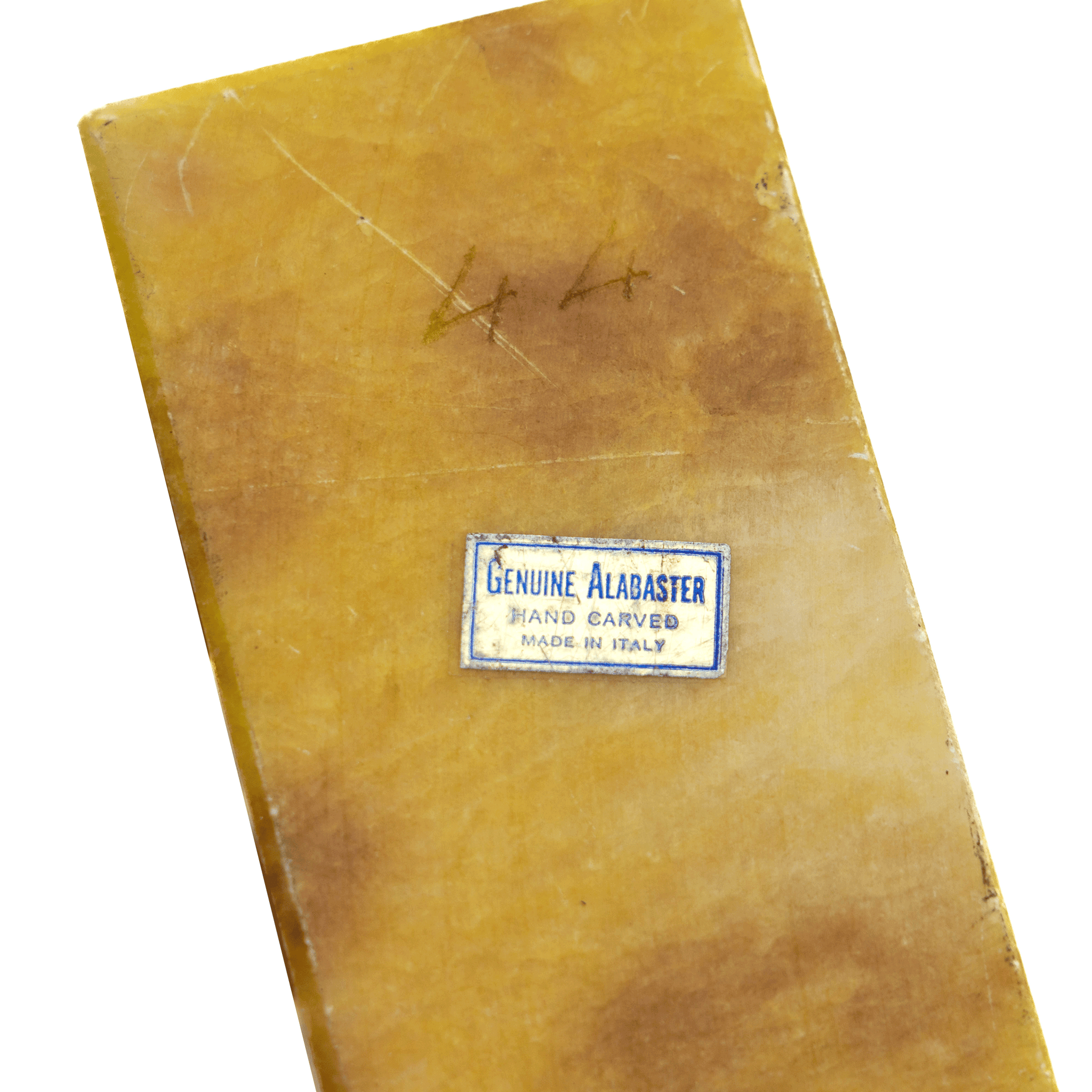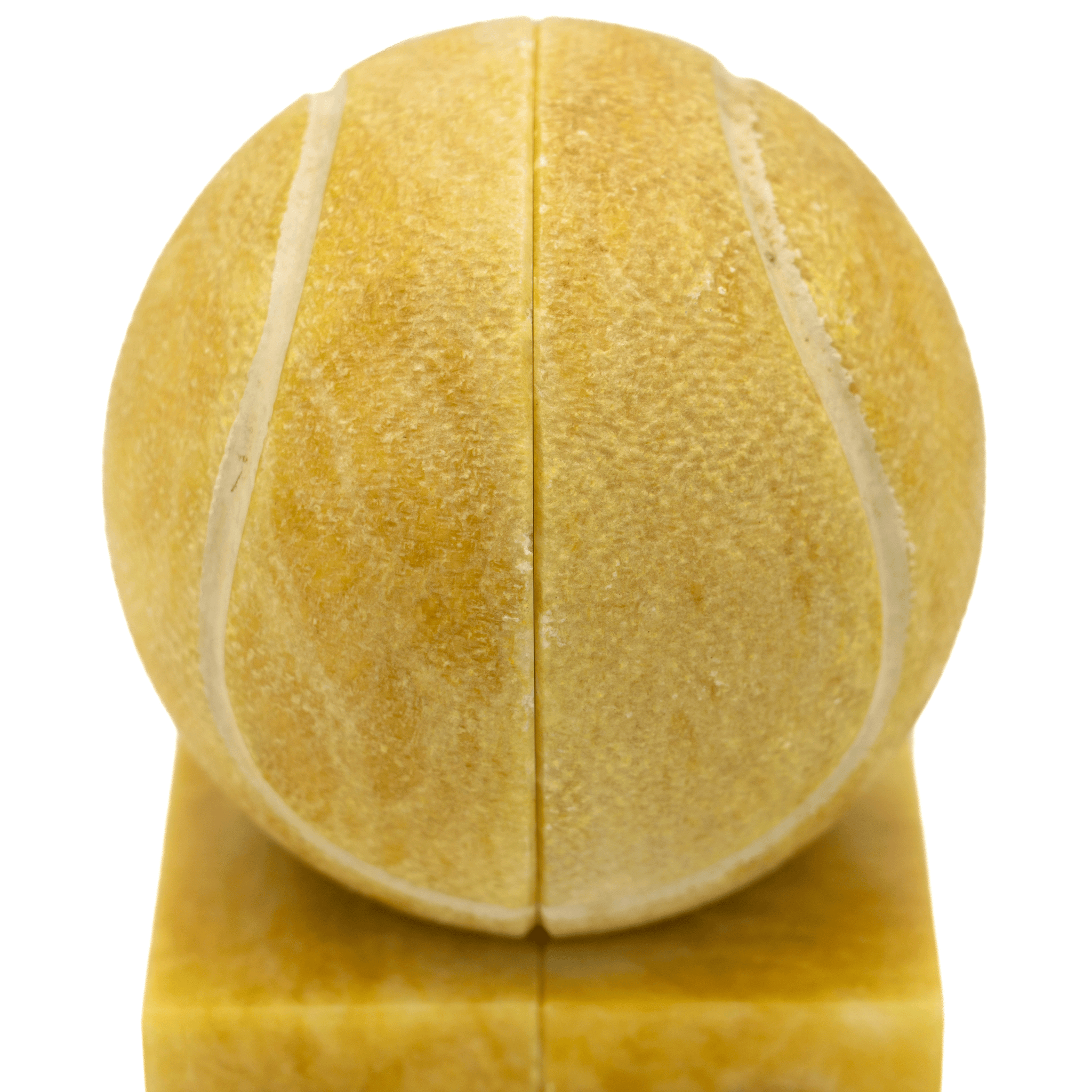 A cool and interesting set of Italian bookends, crafted out of yellow alabaster in a halfed tennis ball form. Let this be a perfect set for any tennis player's den, office, or lounge.