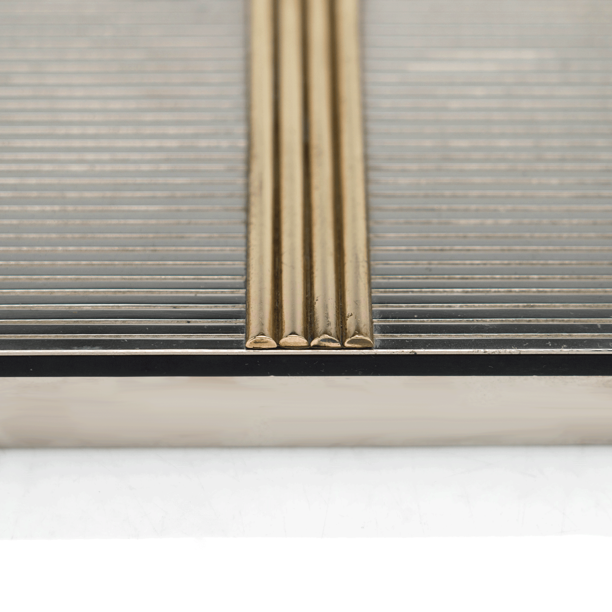A finely made Christian Dior box with a fluted texture across the lid. In heavy-gauge silver-plated brass with gilt-brass accents, this deco-inspired box will be perfect for nearly any room.
