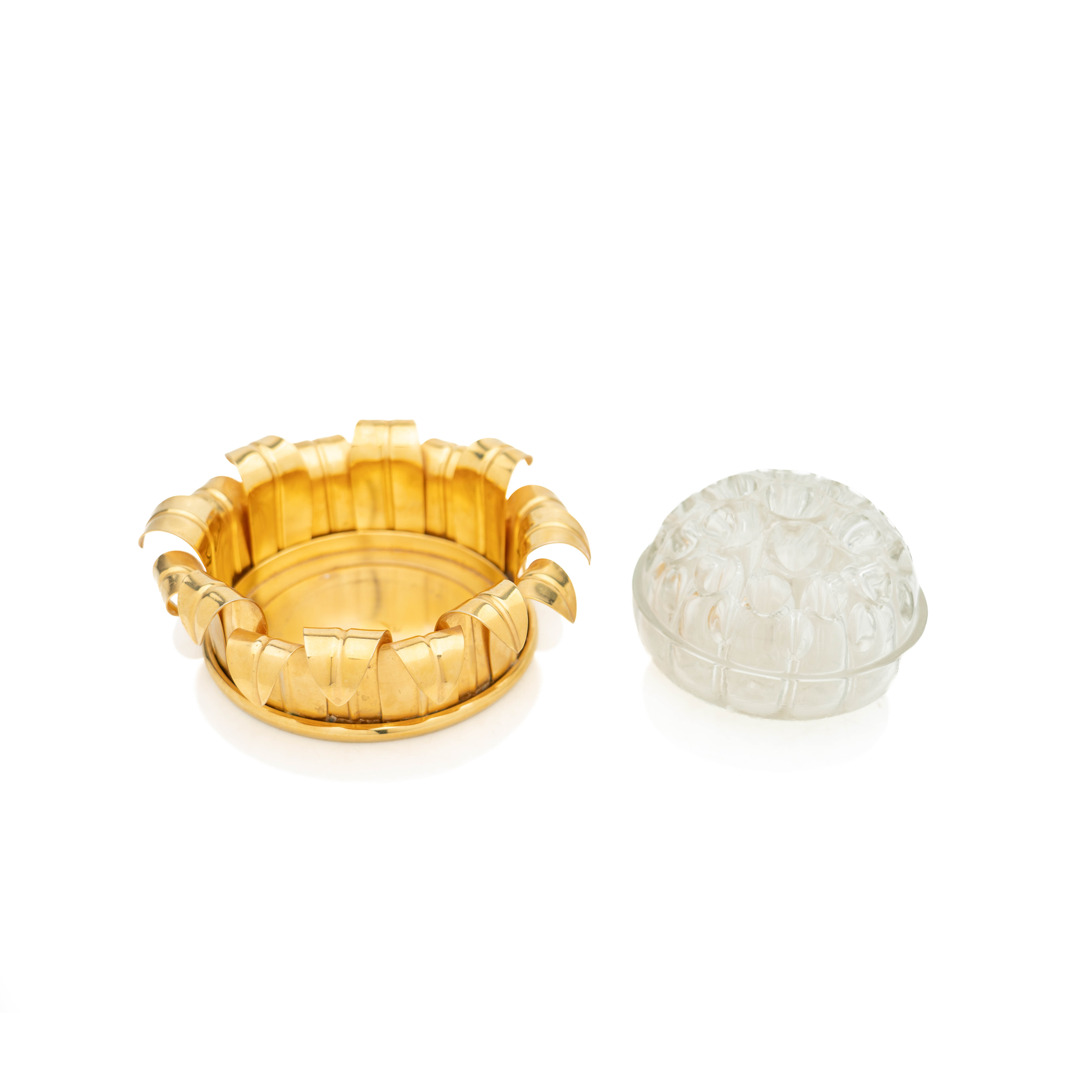 A fine and elegant Christian Dior flower frog, fashioned out of gilt-brass in the form of a flower, with a glass frog insert. This bright and chic flower frog will be a perfect anchor for any floral arrangement.