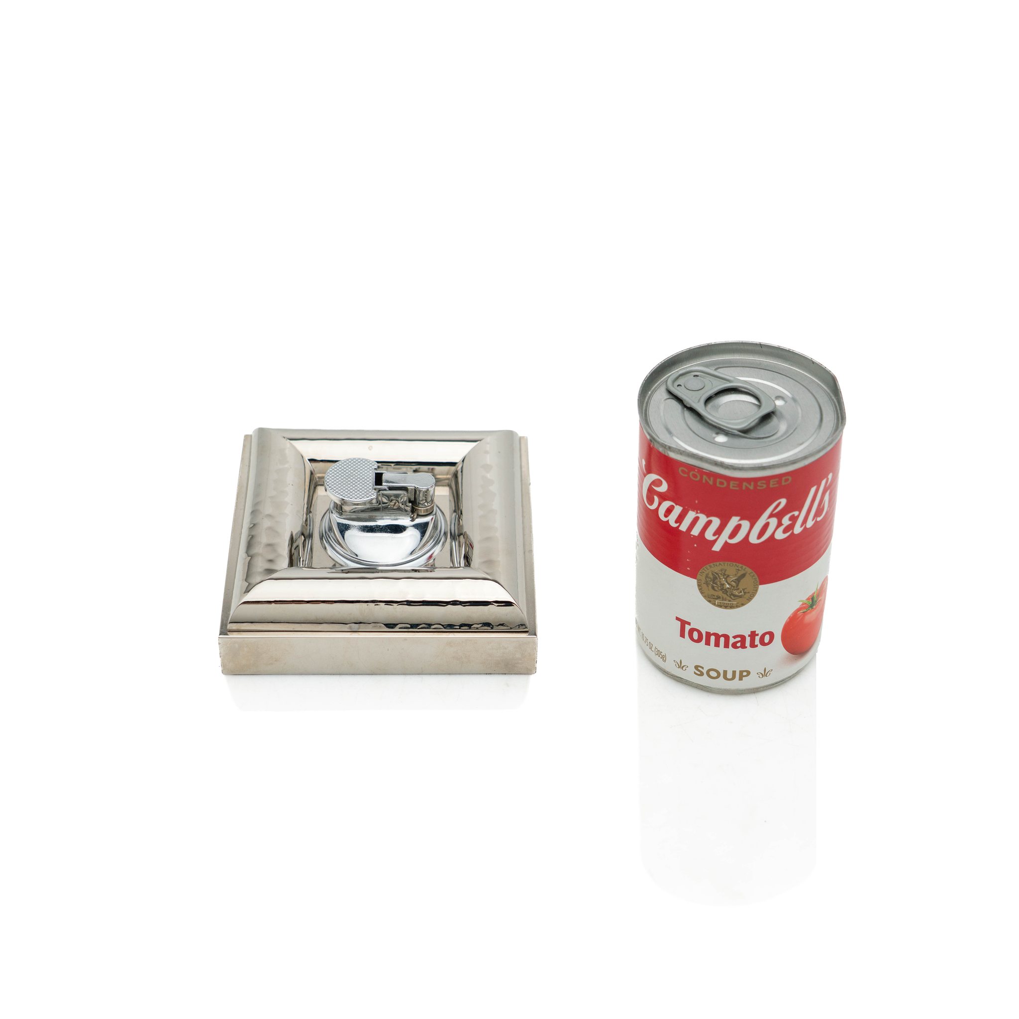 A fine and chic table lighter by Christian Dior. Fashioned out of slightly hammered silver-plated brass in a strong square form, this decadent lighter houses a push lighter inset into the center of the body. Let this chic and practical lighter add a touch of luxury to any home.