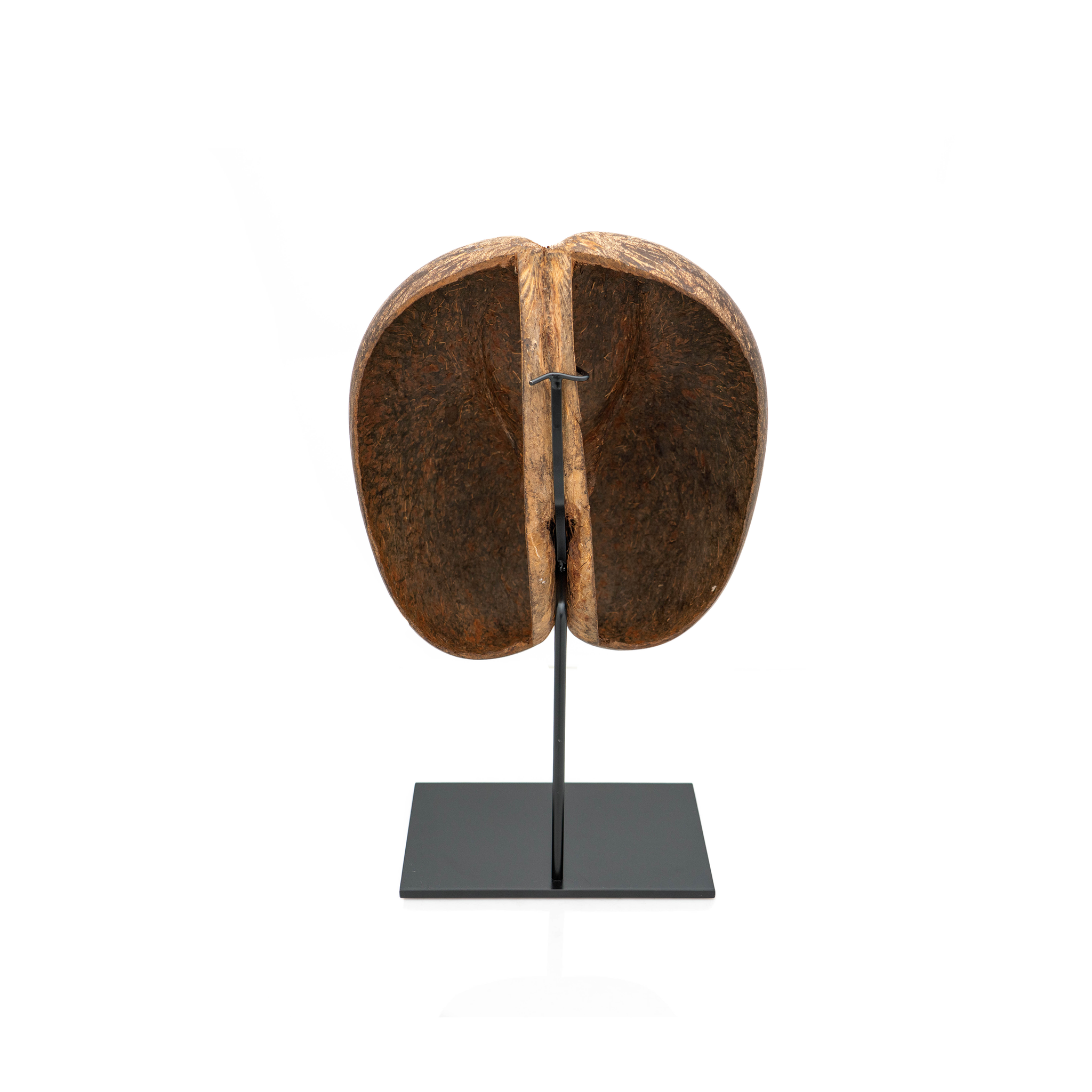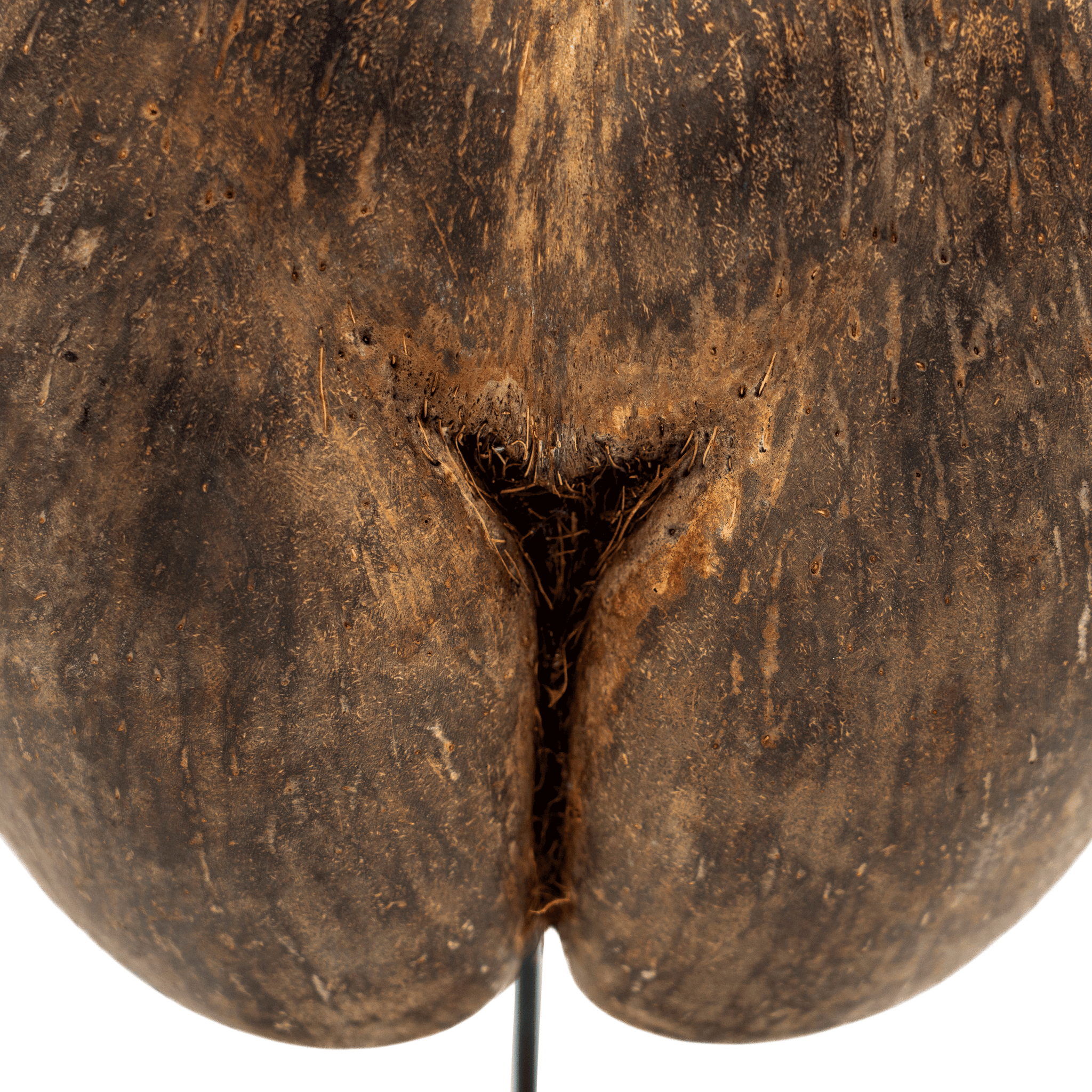 A fine and rare Coco De Mer specimen, mounted on a custom blackened steel stand.