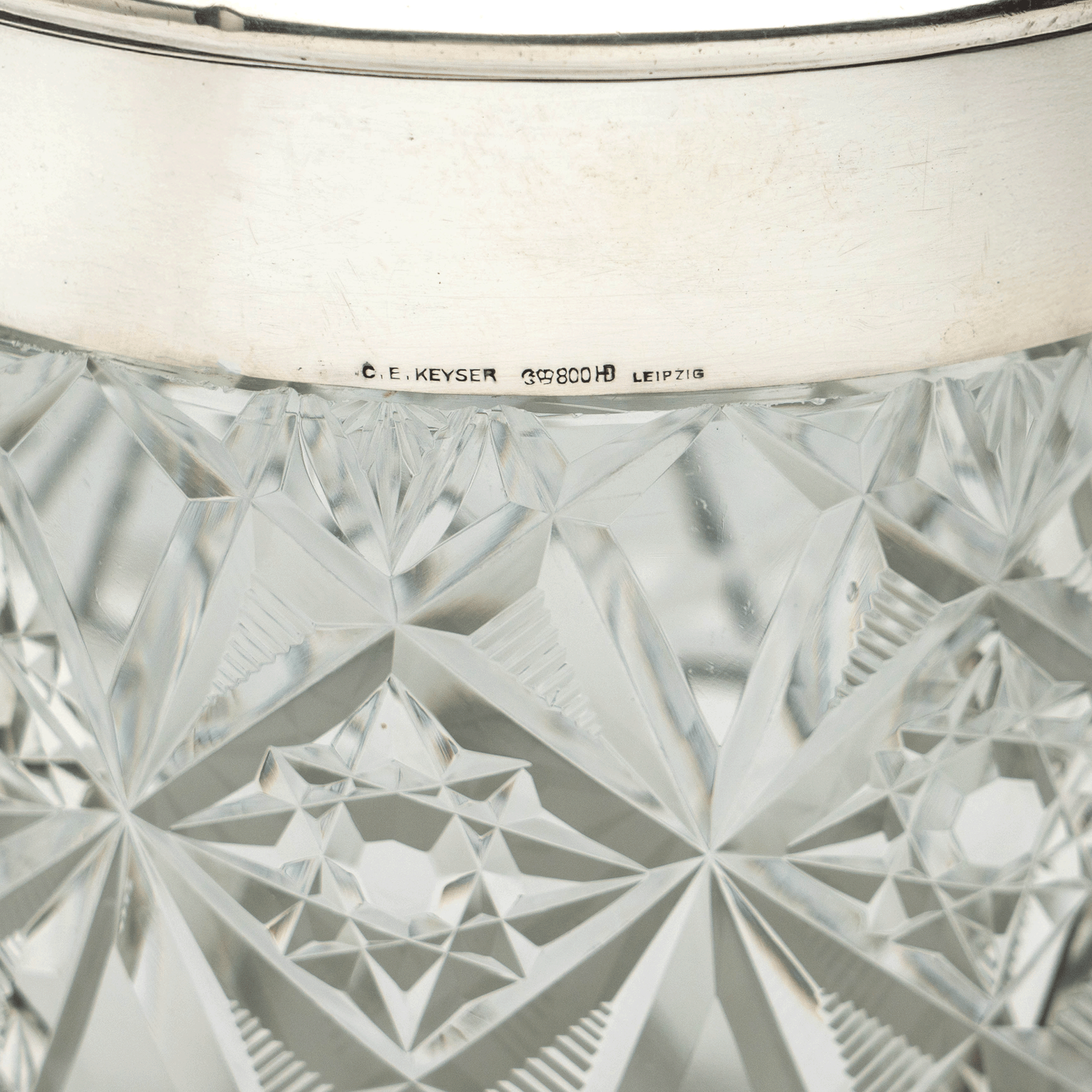A fine and elegant crystal jar with a brilliant cut-crystal pattern and a sterling silver collar and rim. This classic mix of materials and geometric crystal patterns lets this lovely accessory mix into a variety of interiors.