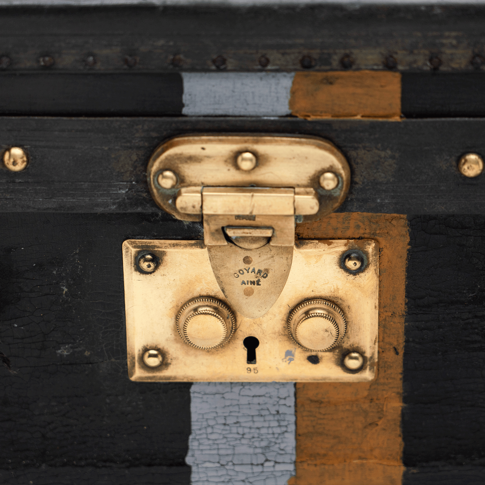 A very fine and rare hardsided trunk by Goyard, one of France's most important trunk makers. A silver and goldenrod pinstripe down the center was used to differentiate each owner's trunk when many people carried various hard-sided trunks. Let this lovely example be a perfect accent in any home.