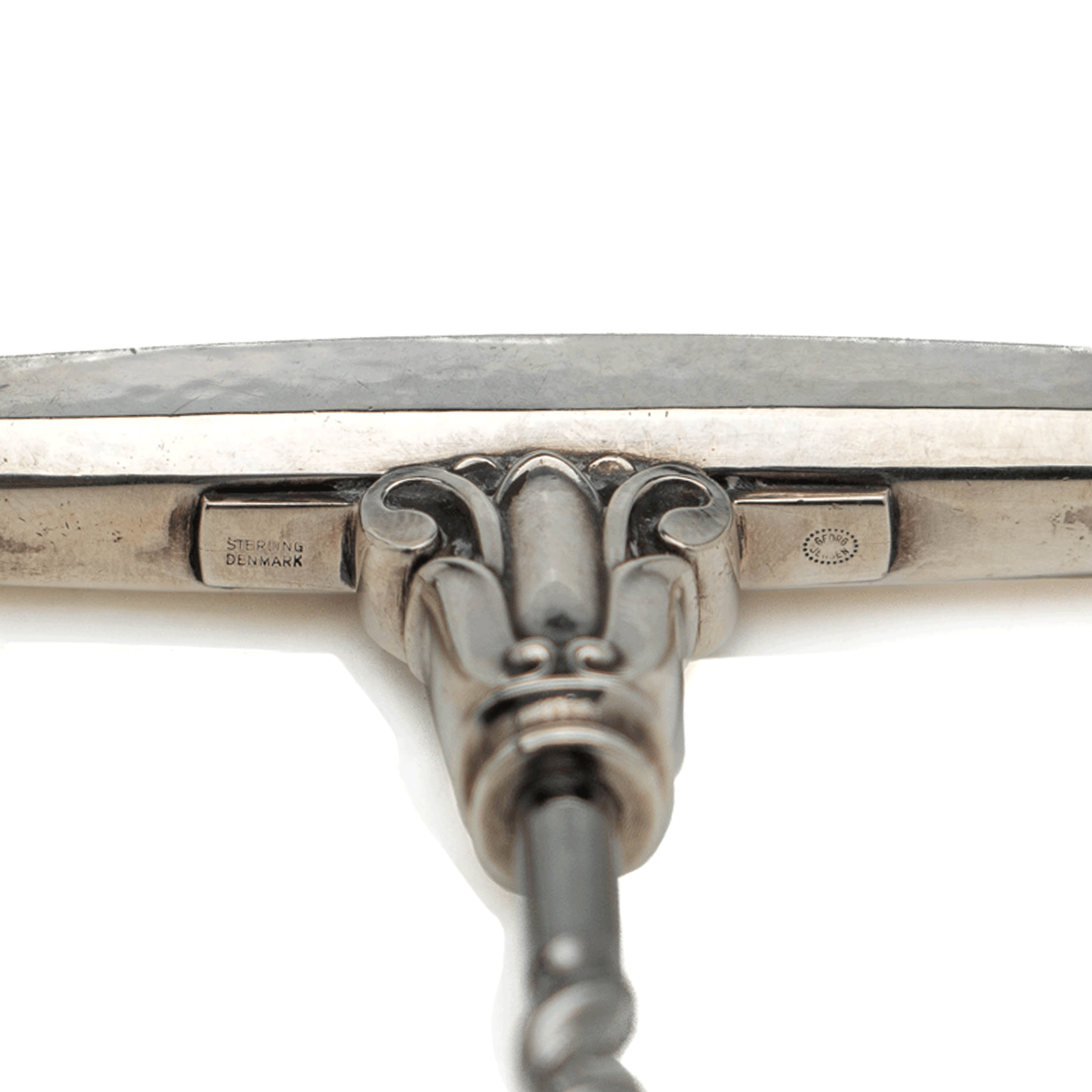A fine and rare set of sterling silver bar tools by Georg Jensen, a prolific silversmith known for his perfect mix of beauty and functionality. This lovely set consists of a wine corkscrew, serving tongs, and a cheese knife. Let this fabulous set be the perfect companion for any bar or table.