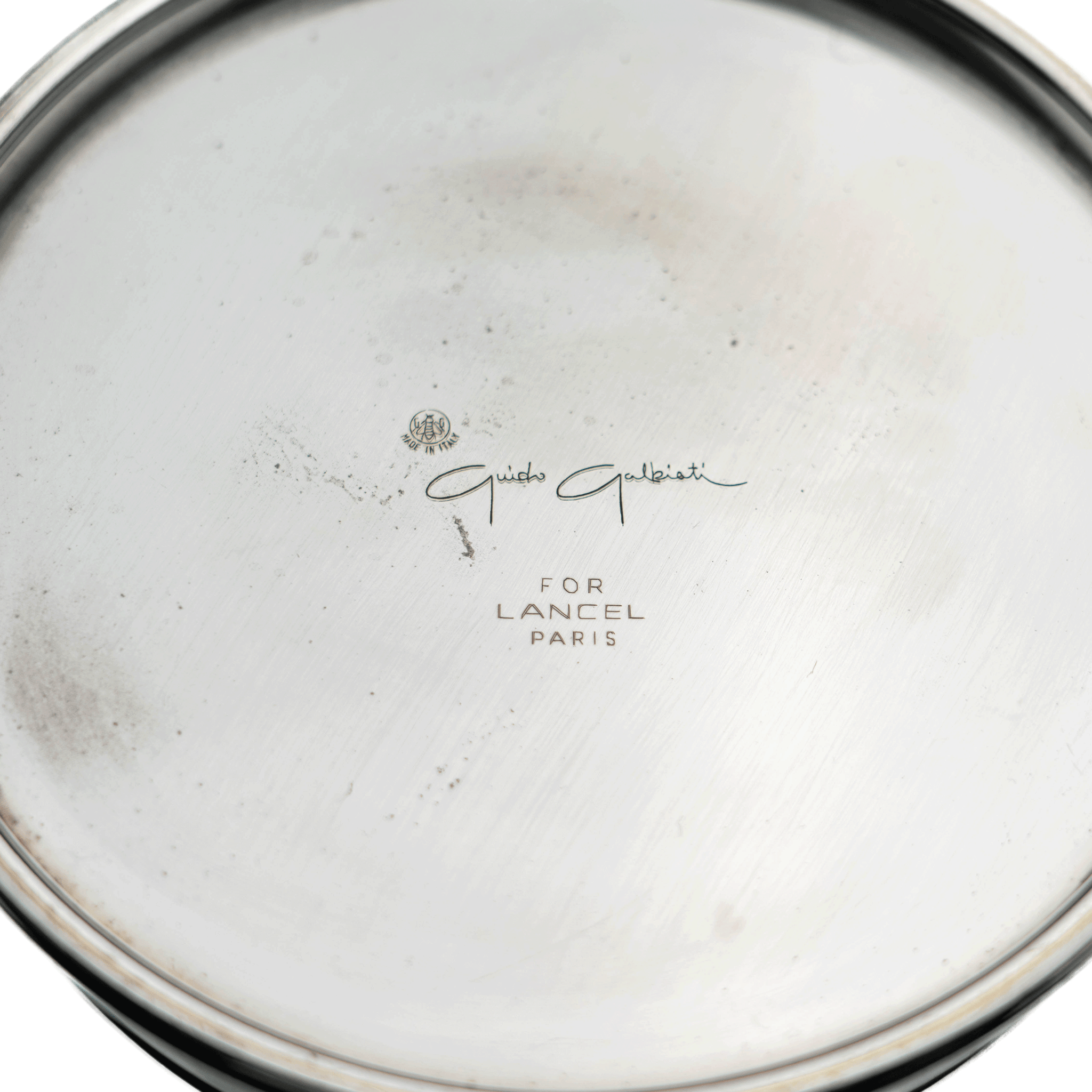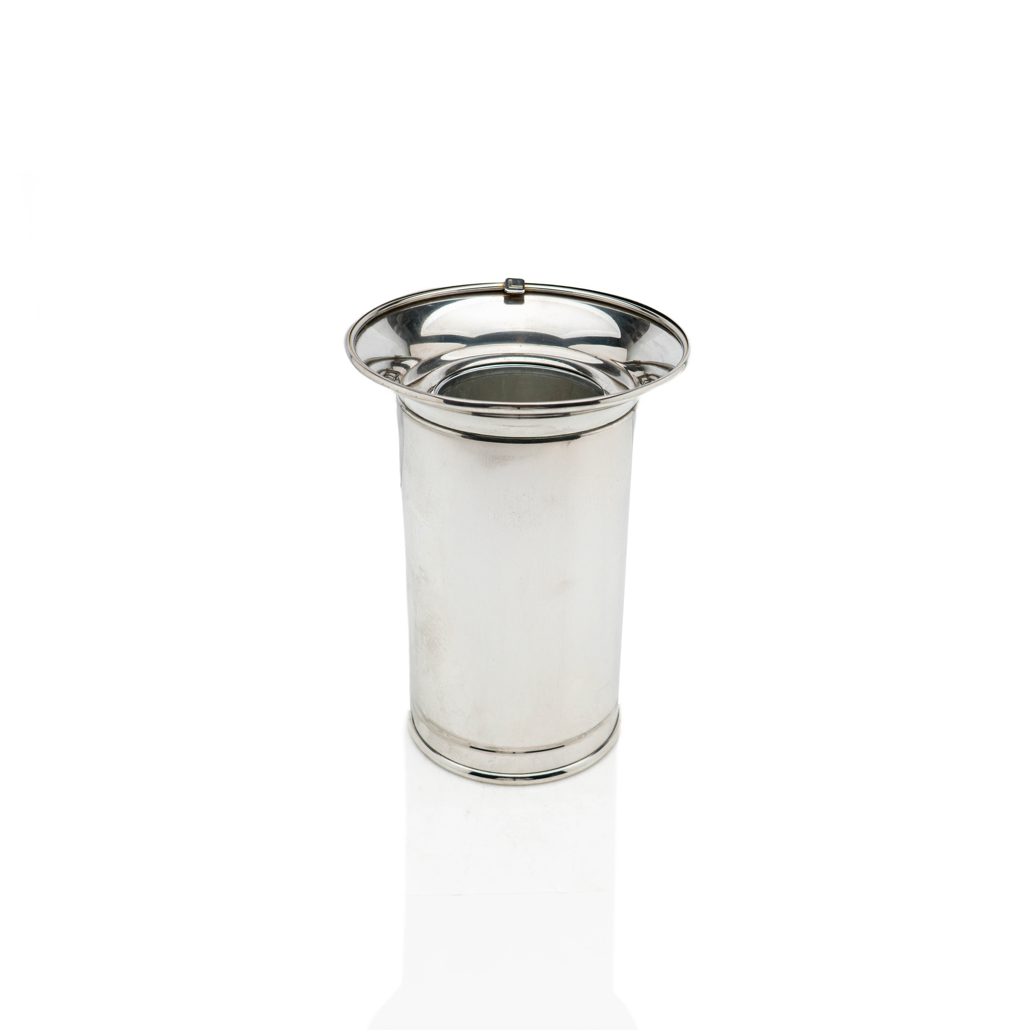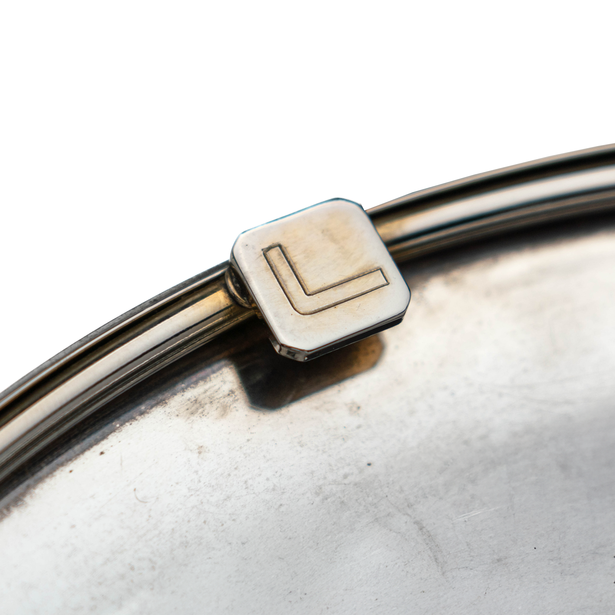 A fine and elegant wine bottle holder designed by Guido Galbiati for Lancel Paris. A simple cylindrical construction if met with a splayed collar, bearing a simple 'L' for Lancel. This lovely accessory will be the perfect partner for any bottle of wine.