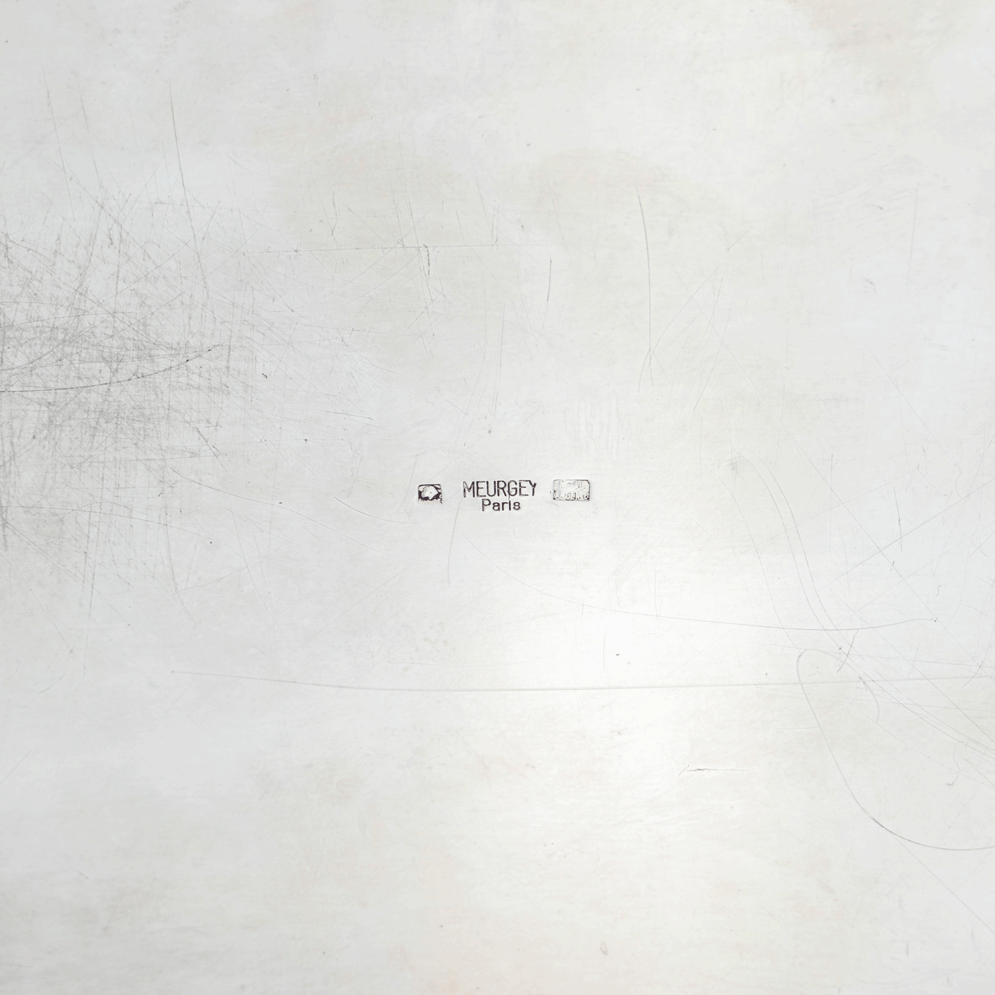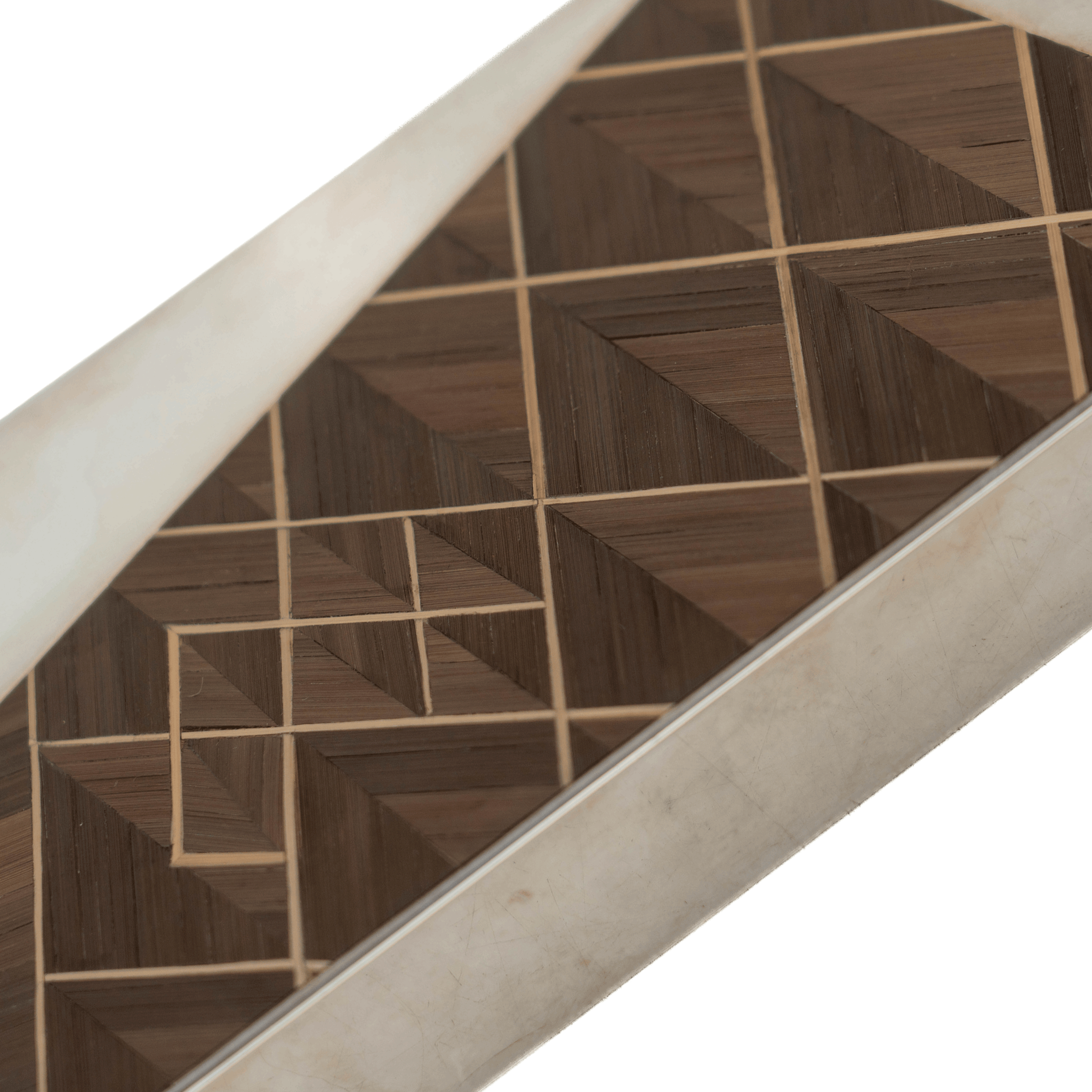 A fine and elegant French box by Meurgey, fashioned out of silver-plated brass with a straw marquetry pattern across the lid. This geometric French box provides the perfect amount of texture and material for any modernist home.
