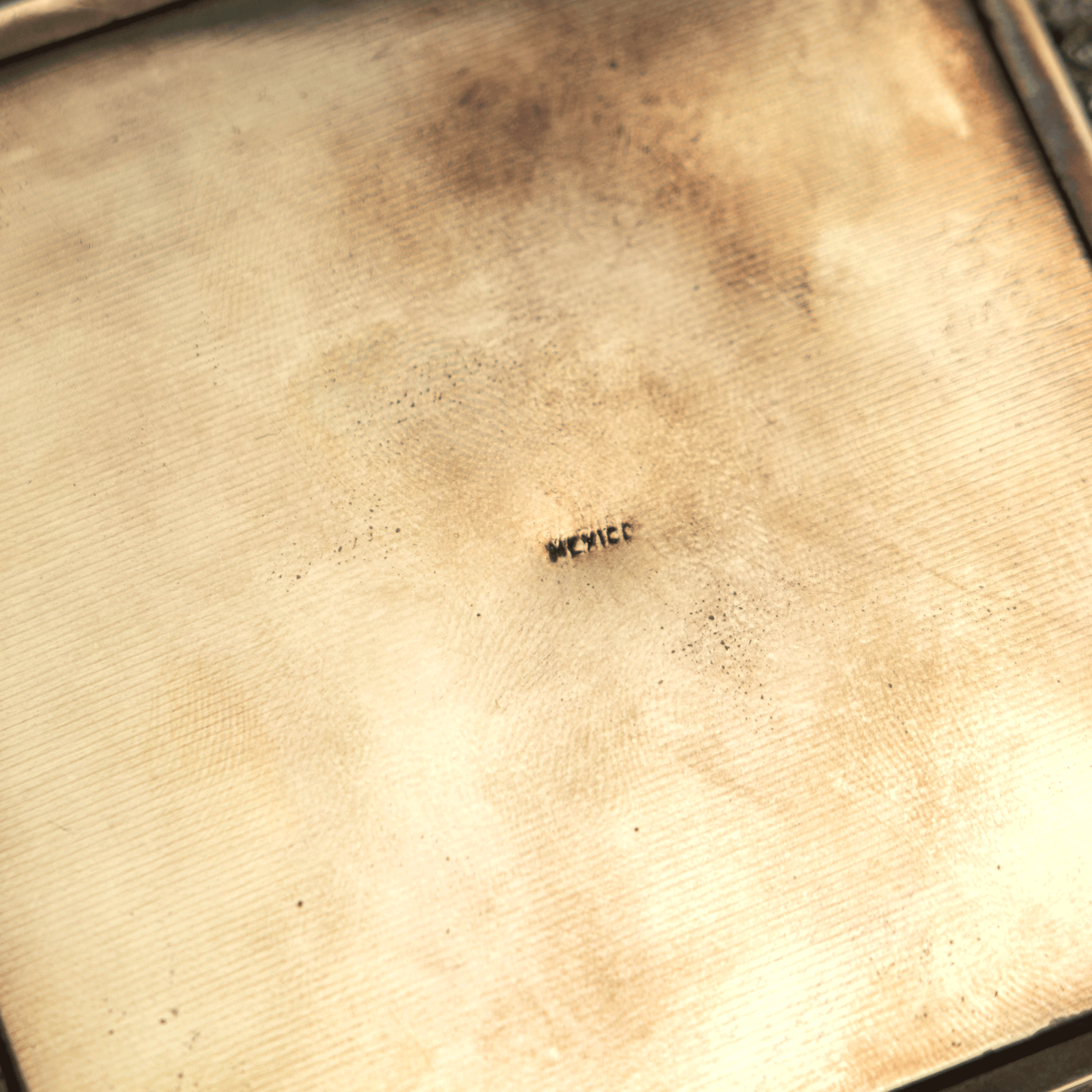 A fine and interesting box, crafted from gilt-brass and finished with a mosaic of pyrite around the entirety of the box. Set on four splayed feet, this texture-heavy and captivating box will bring a new element to any surface it's set upon.
