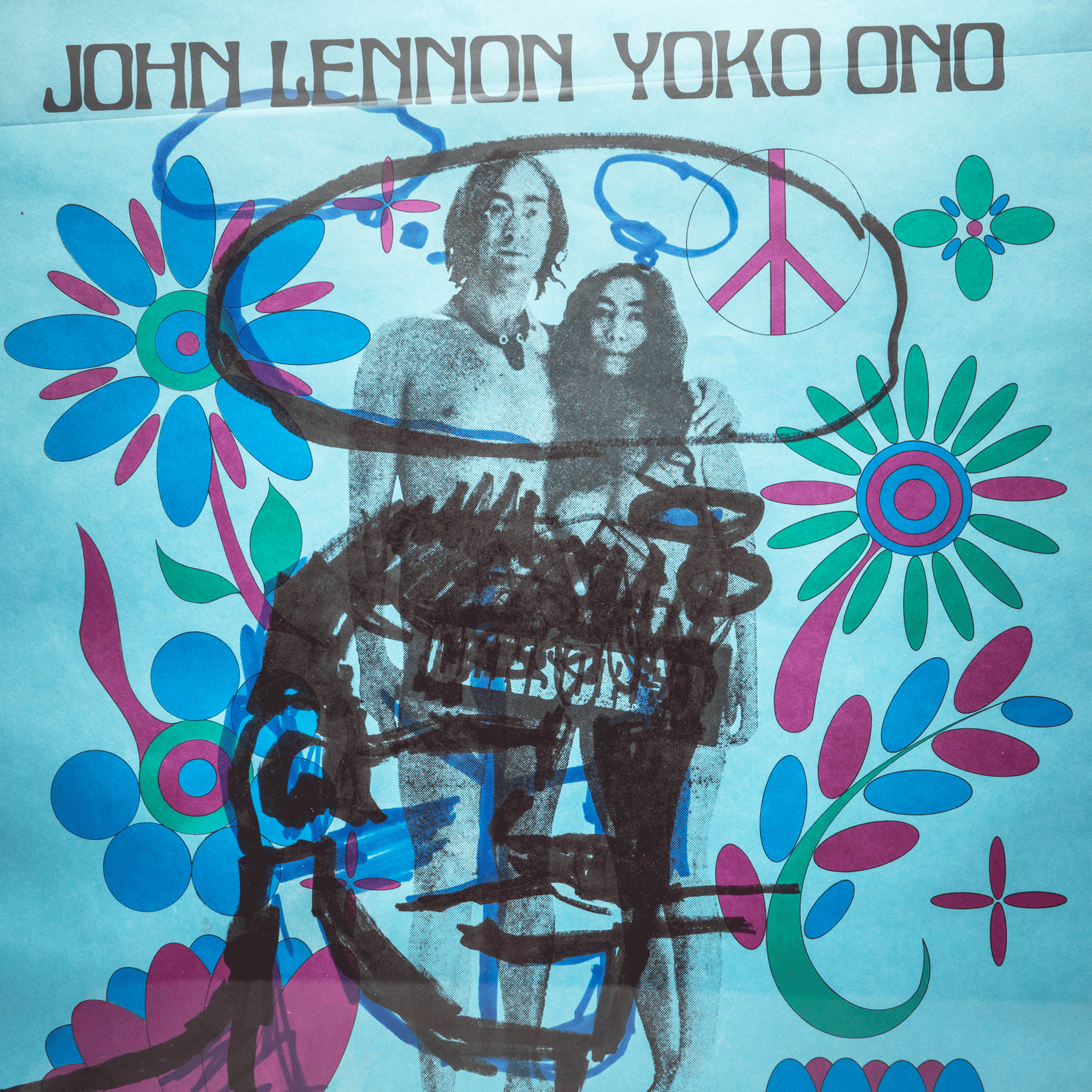 A fantastic painting by the famed Robert Loughlin, a well renowned antique dealer turned artist whose work is coveted by many. Featured is his iconic Brute, painted on a found poster of John Lennon & Yoko Ono.