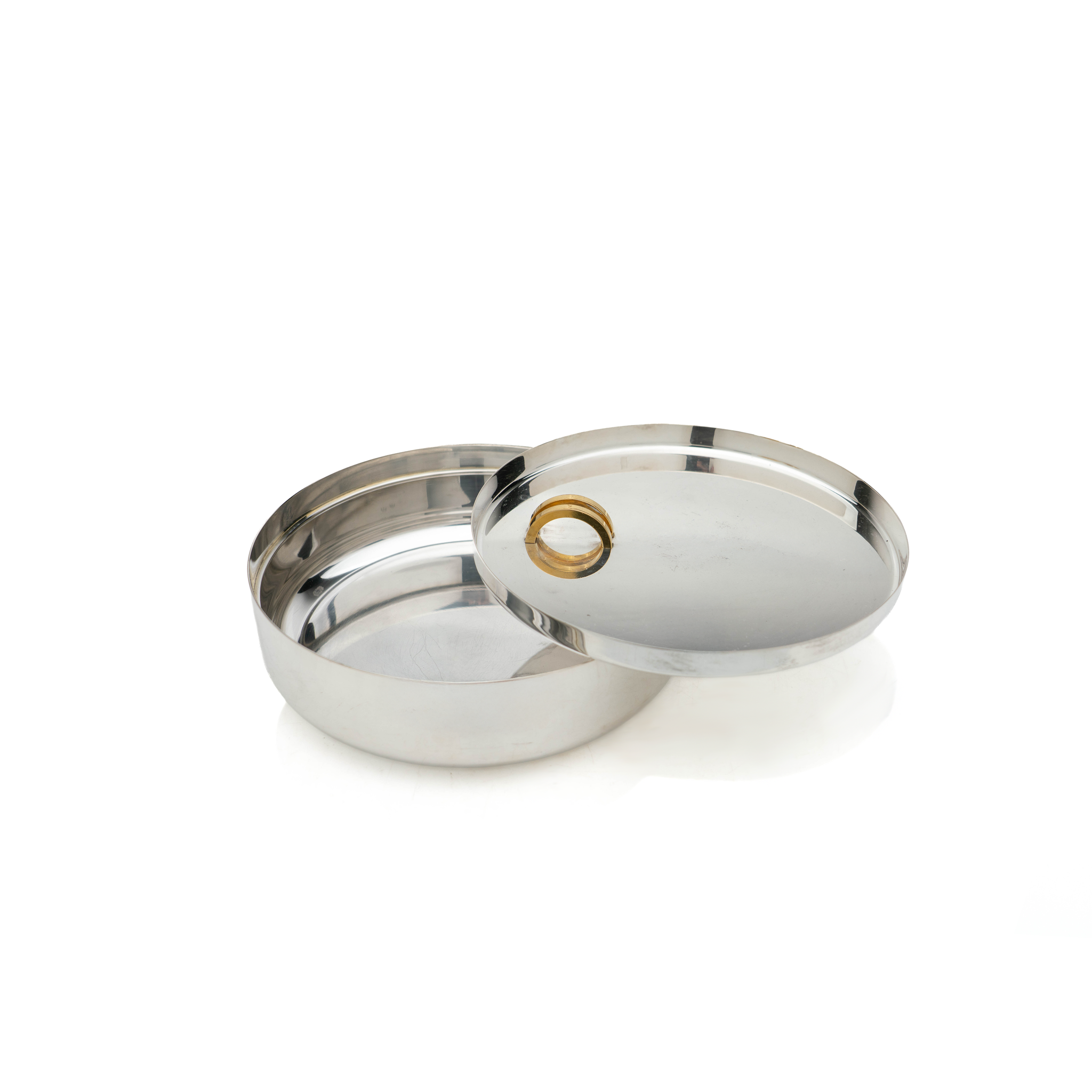 A fine and interesting Italian box with an inset lid and double-ring handle. Let this delightful and refined piece of tableware help elevate any room it's set in.