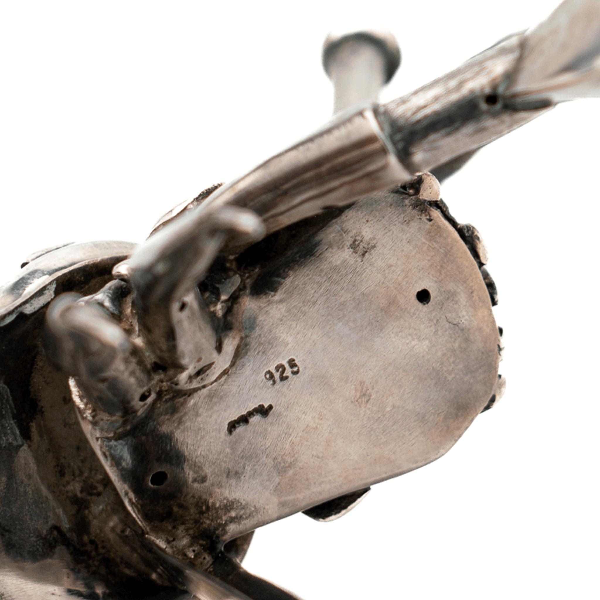A fine and rare jeweler-made sculpture of a hermit crab. Made in Italy during the 1960s, this fabulous piece has been fashioned out of sterling silver with a mother-of-pearl body, complete with an articulated claw and cabochon garnets. Let this fabulous object of virtue add a nautical touch to any home.