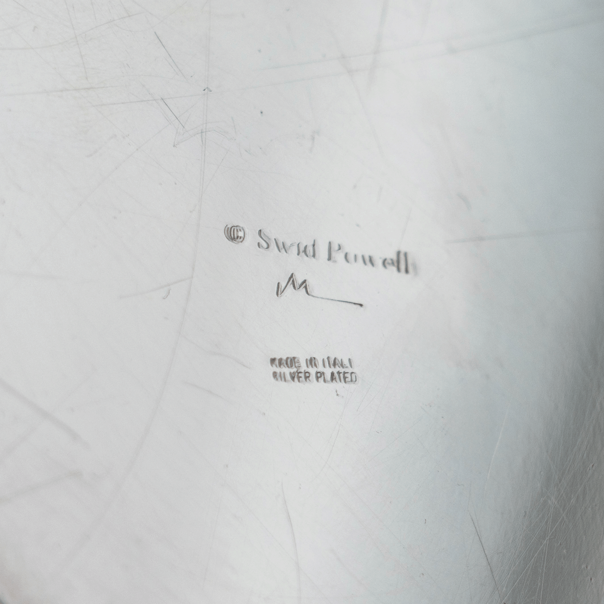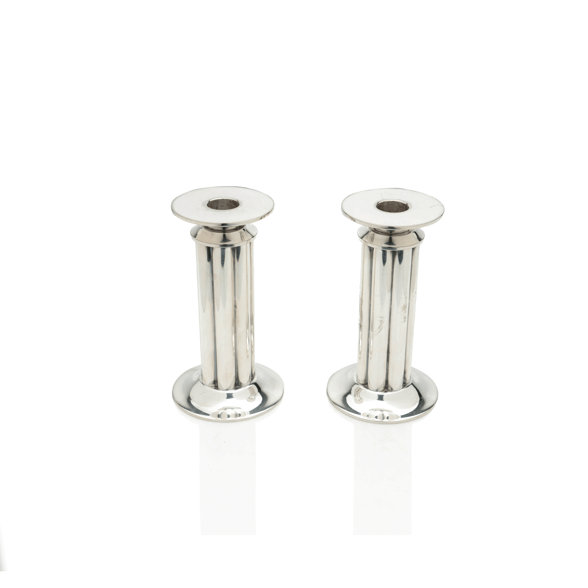A fine and chic pair of candlesticks, designed in a modernist totemic form for Swid Powell. This subtle yet strong set of silver-plated brass candlesticks will be the perfect accent on any table.