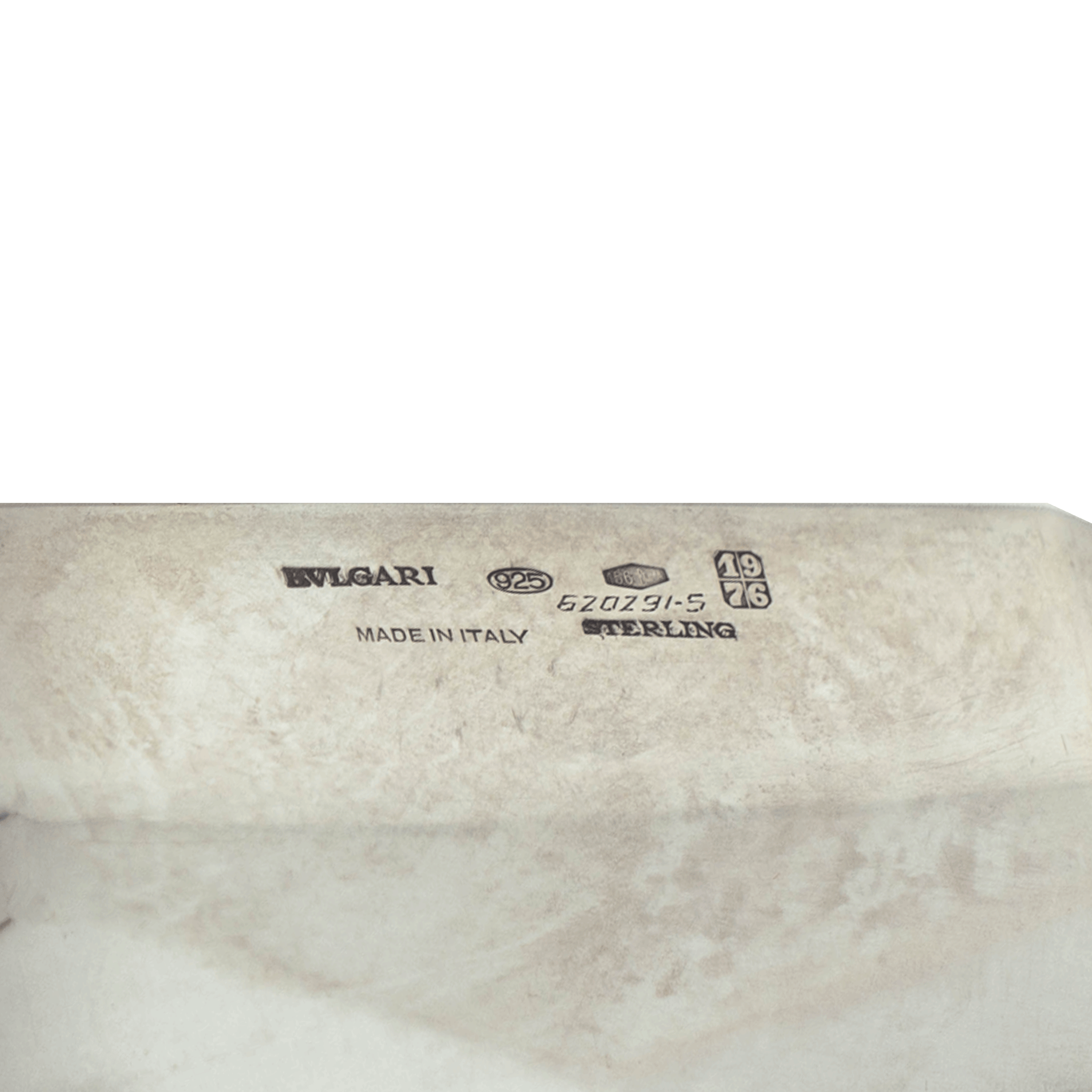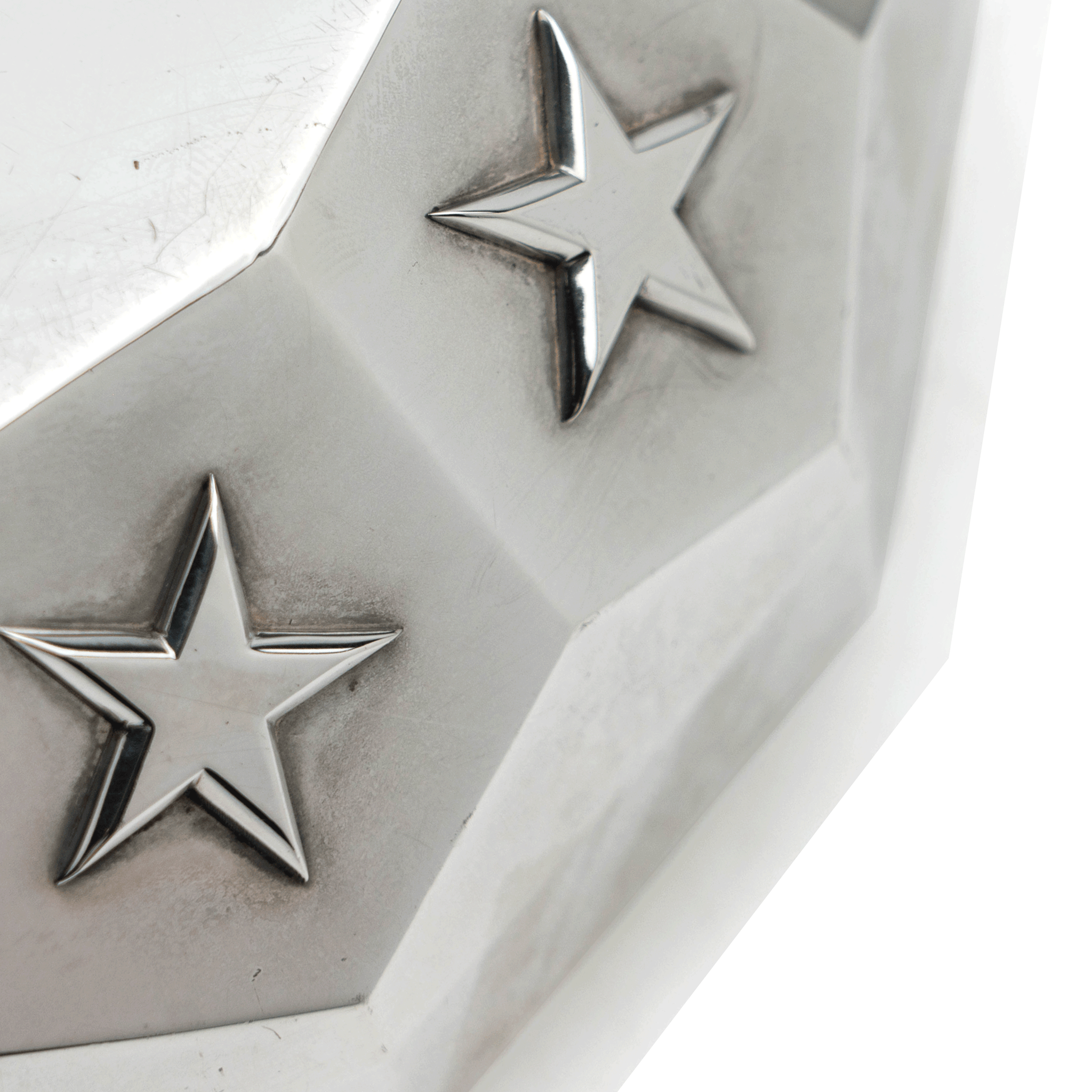 A fine and rare sterling silver centerpiece by Bvlgari. Crafted out of a heavy gauge of sterling silver in a faceted design, with applied sterling silver stars around the perimeter. This sizable and optic centerpiece is a perfect example of Bvlgari's incredible silversmith's work.