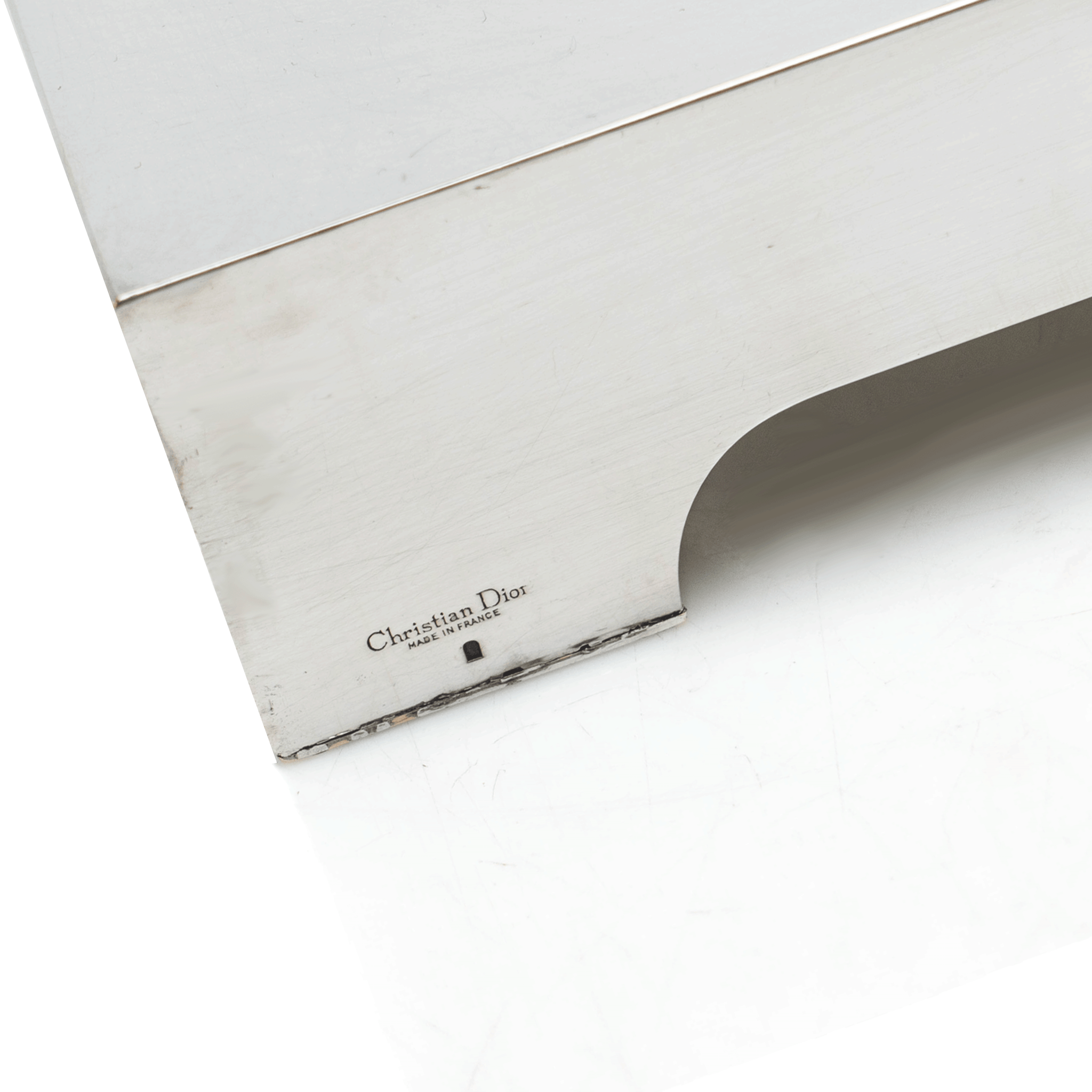 A fine and elegant catchall by Christian Dior, fashioned out of silver-plated brass in a modern pedestal form. This simple yet chic catchall is a perfect modernist form for any interior.