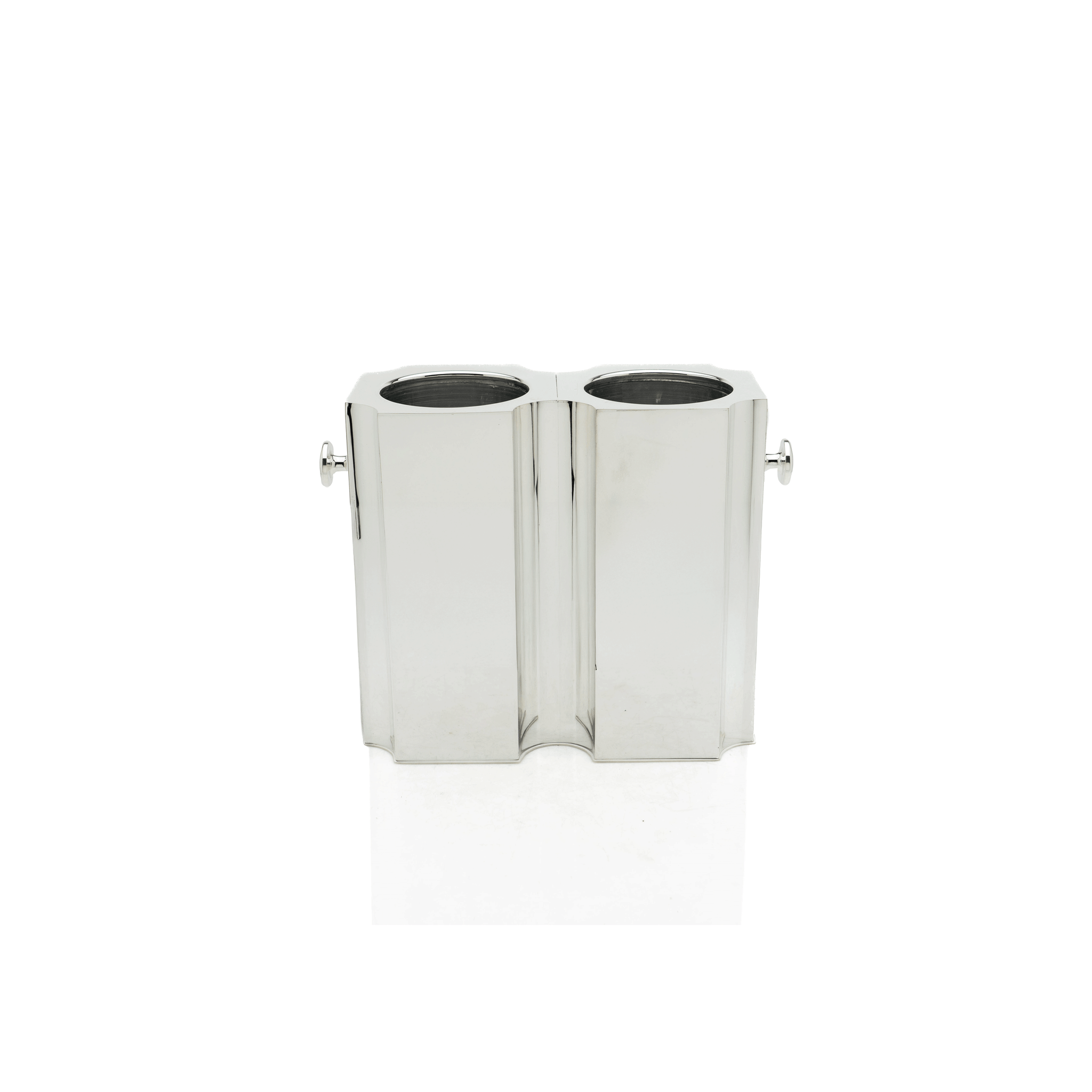 A large and fine double wine cooler by Christian Dior, featuring large, rounded handles on either side and a scalloped edge. Fashioned out of silver-plated brass, this lovely piece of barware will be a perfect companion at your next party or event.