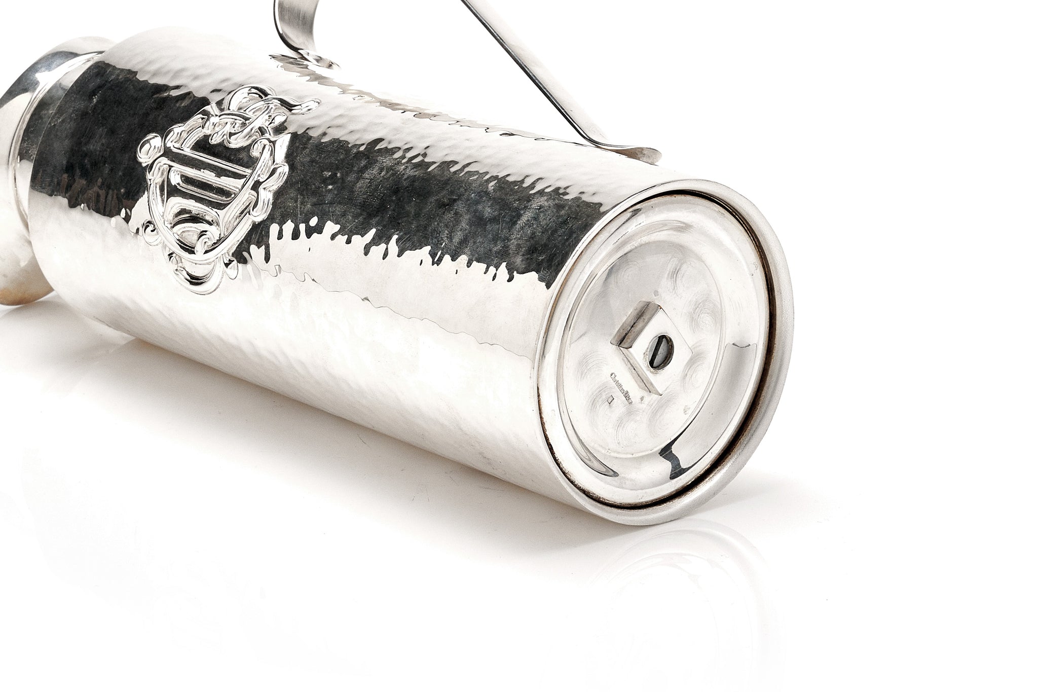 A fine and elegant pitcher by Christian Dior, in a chic hammered silver. Complete with a ribboned handle, and embossed Dior logo, this will be a perfect accessory to any bar.