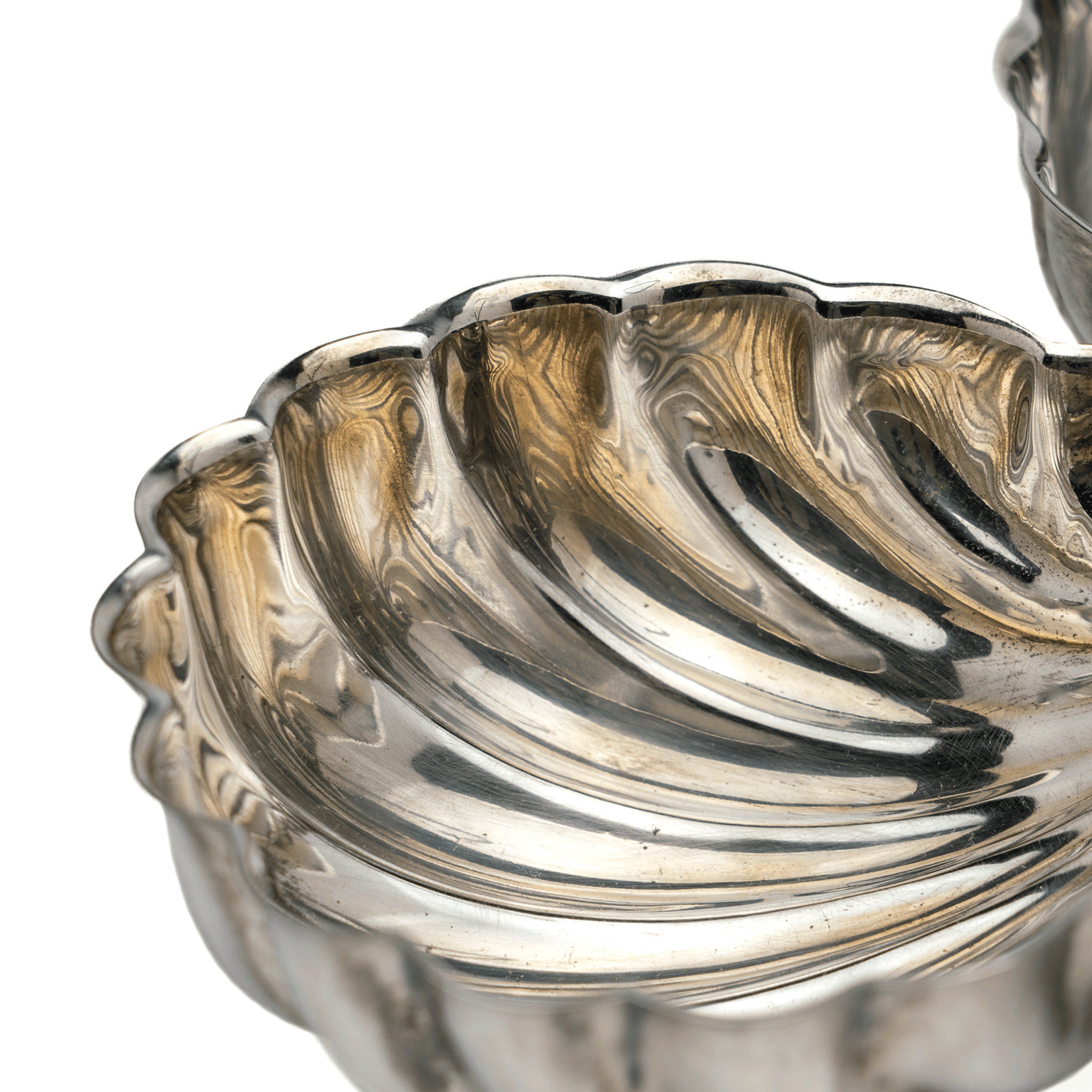 A fine and elegant triple shell dish by Christian Dior, fashioned out of silver-plated brass with incredible detail. Each shell is joined at the center, meeting with a large handle for ease of moving -- a perfect piece for any nautical home.