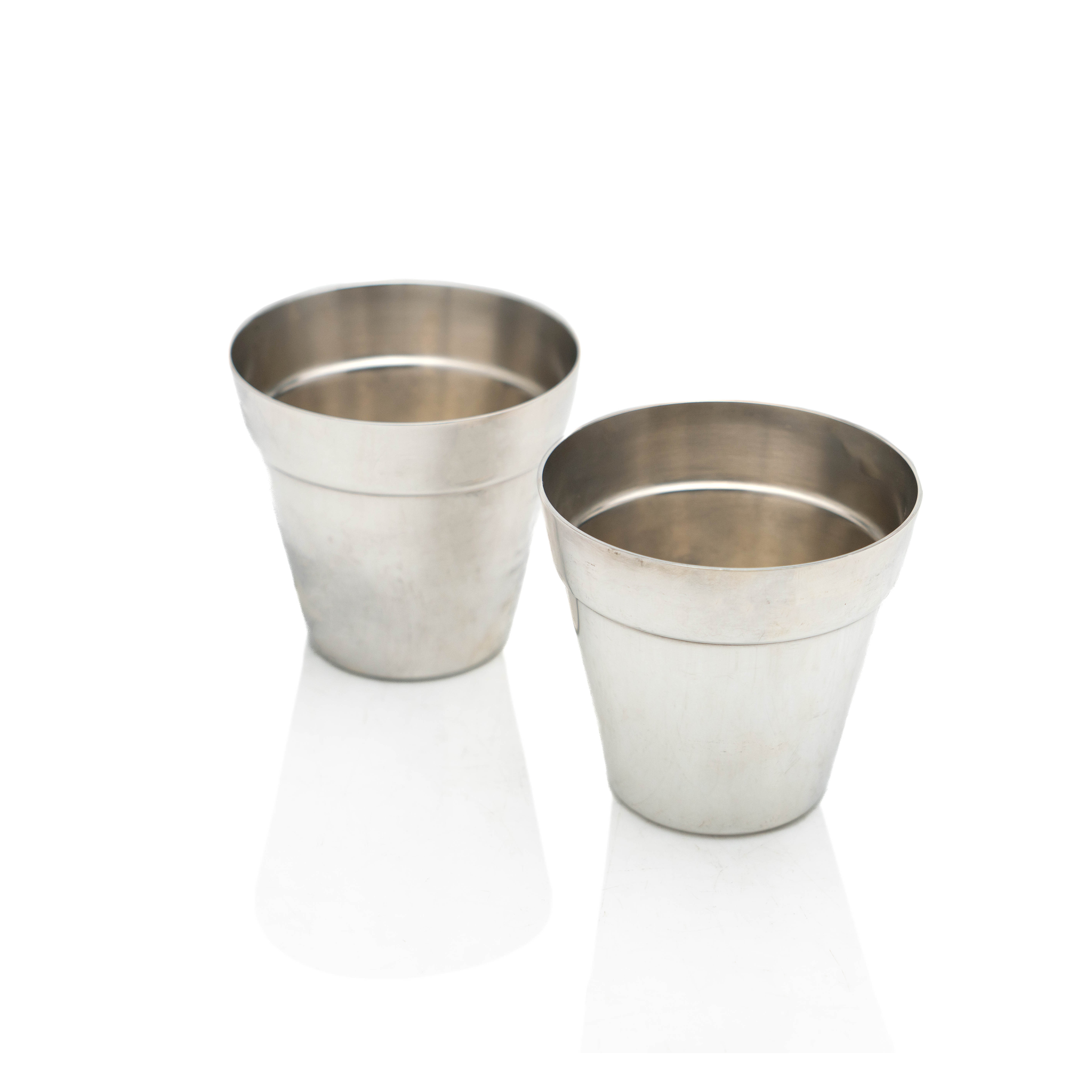 A fine and elegant pair of Christofle pots, each in the form of a planter. Each pot bears an acrostic poem with names of various flora, all spelling out 'Christofle'. Let these lovely pots be the perfect host for your new flowers.