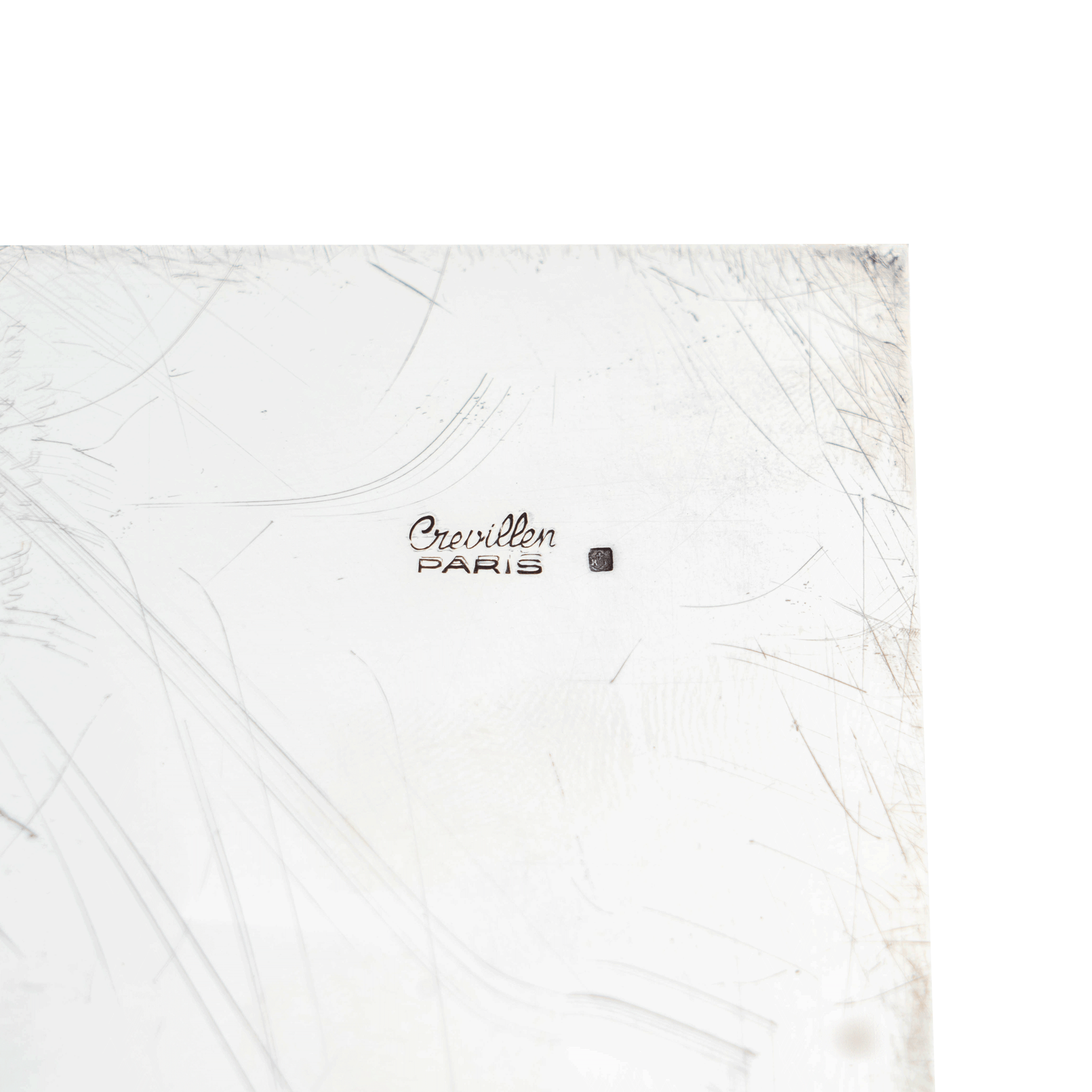 A fine and large box by Crevillen Paris, featuring a silver body with an etched pattern across the lid. Complete with a velvet-lined interior, this large and decadent box will be perfect for storing anything precious.