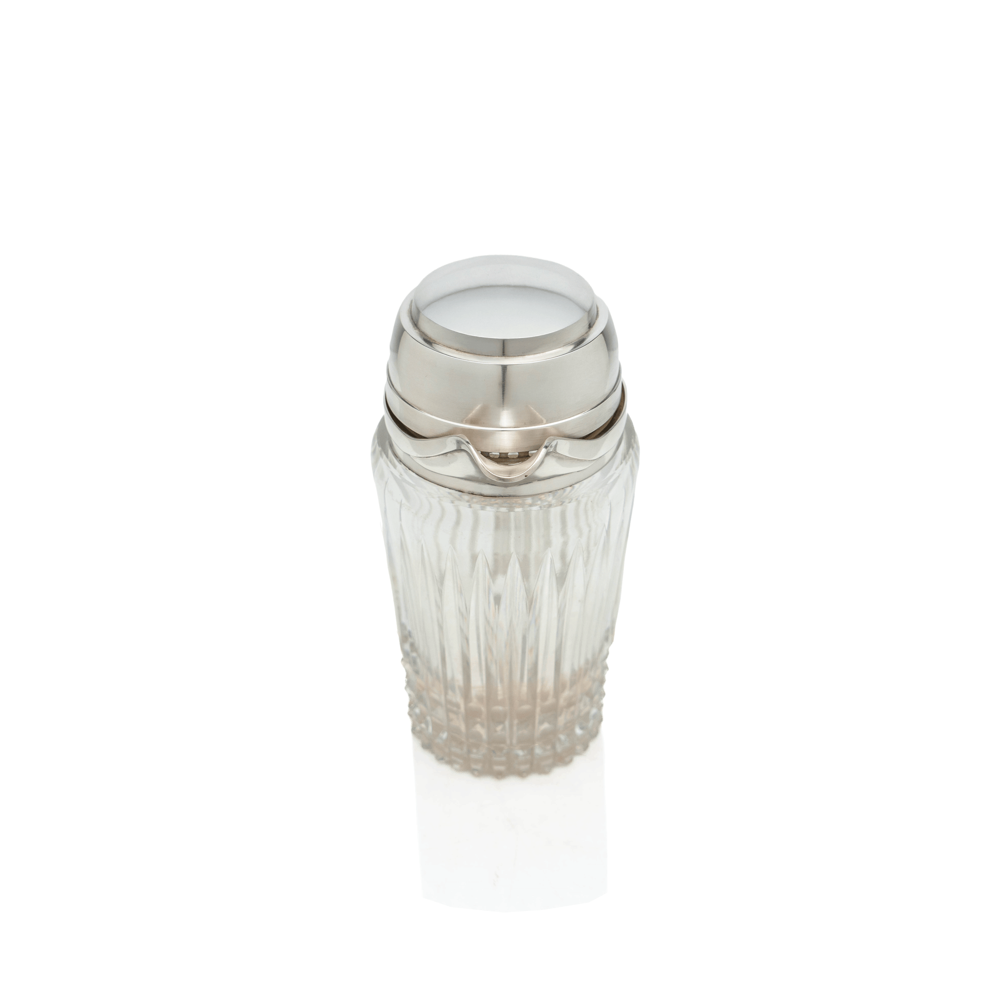 A fine and rare cocktail shaker by Puiforcat. Crafted from a heavy-gauge silver-plated brass with a thick cut crystal body, this elegant shaker perfectly blends traditional forms and modern sensibilities.